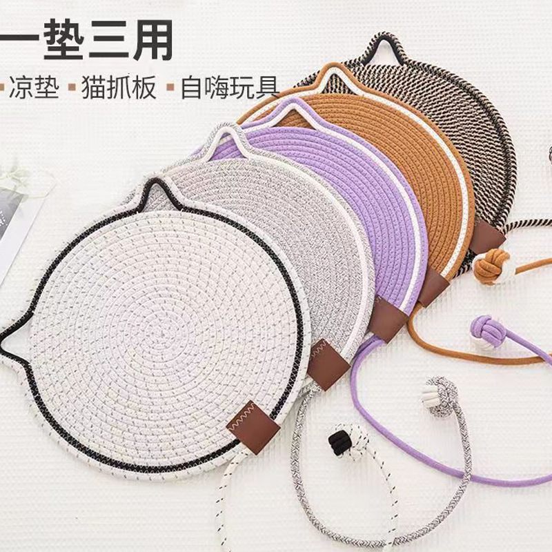 국경 직조 면 로프 고양이 긁기 매트 셀프 하이 볼 통합 수면 매트 빨 수있는 마술 긁기 마술 고양이 발톱 매트