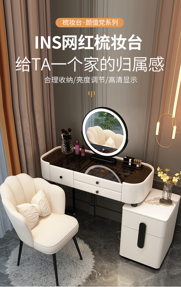 간단한 록 메이크업 아파트 하이 엔드 드레싱 테이블 메이크업 테이블 현대 보드 작은 아파트 침실 빛 작은 가구 전체 드레싱 테이블스토어 가기