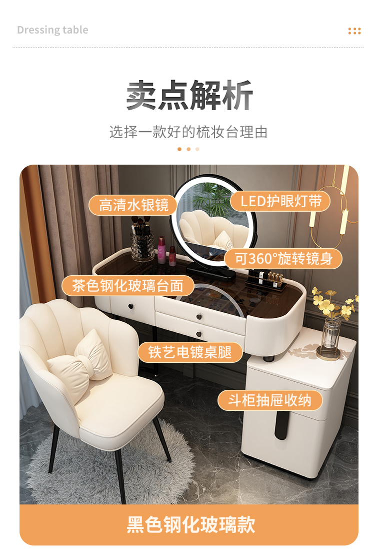 • ZL01 흰색과 검은 색 80 + 캐비닛 + 거울 + 흰색과 검은 색 공주 의자 모든 단단한 나무 강화 유리