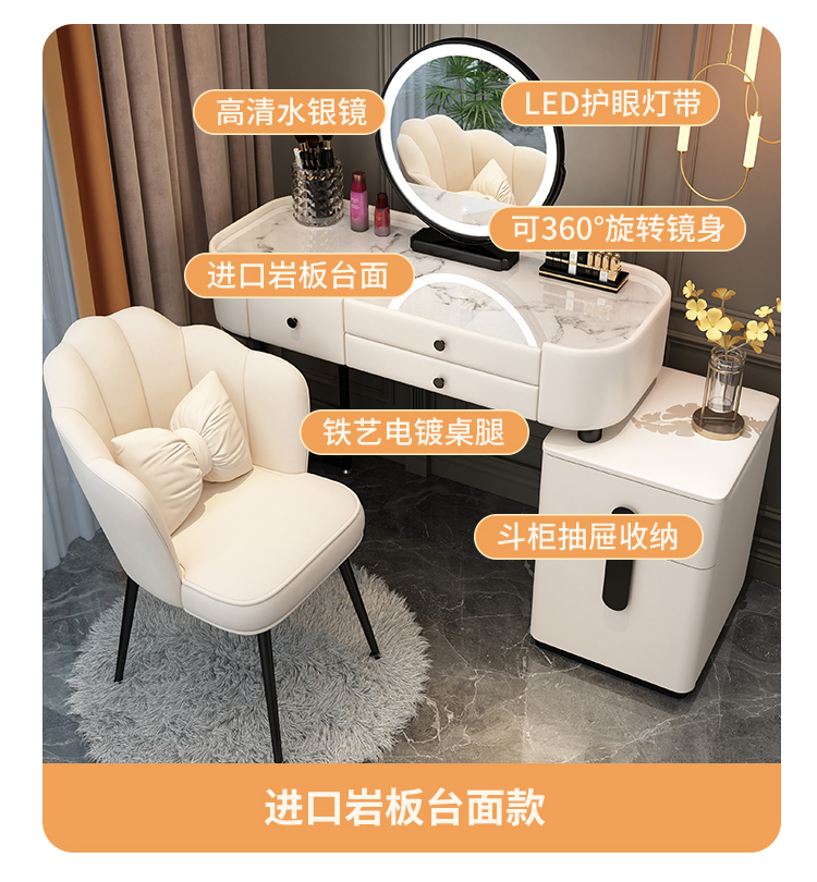 • ZL01 플래티넘 80 + 캐비닛-거울 + 플래티넘 꽃잎 의자 단단한 나무 바위 플레이트 데스크탑