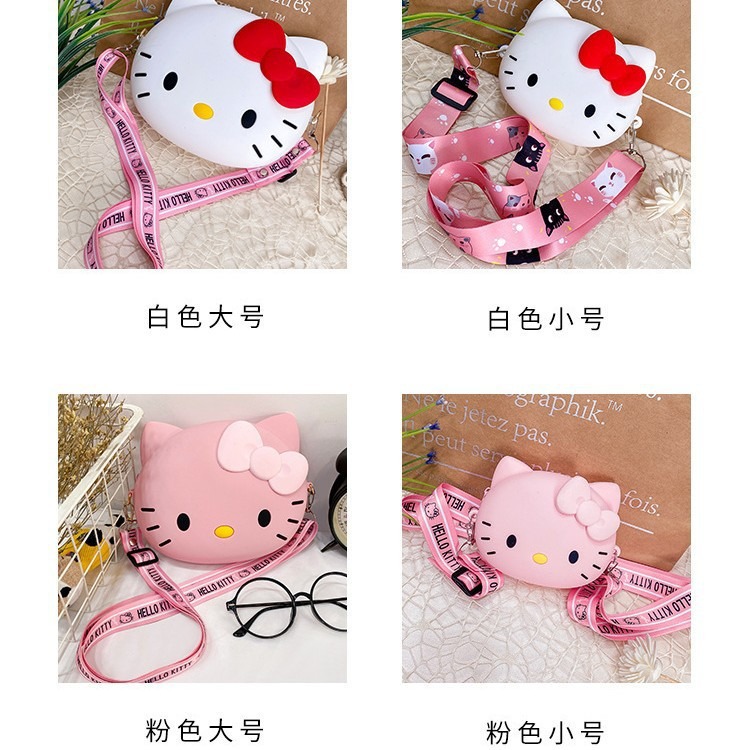 2022 여름 새로운 어린이 가방 남자와 여자의 귀여운 만화 실리콘 헬로 키티 메신저 가방 작은 소녀 스낵 가방스토어 가기