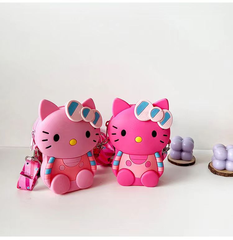 2022 여름 새로운 어린이 가방 남자와 여자의 귀여운 만화 실리콘 헬로 키티 메신저 가방 작은 소녀 스낵 가방