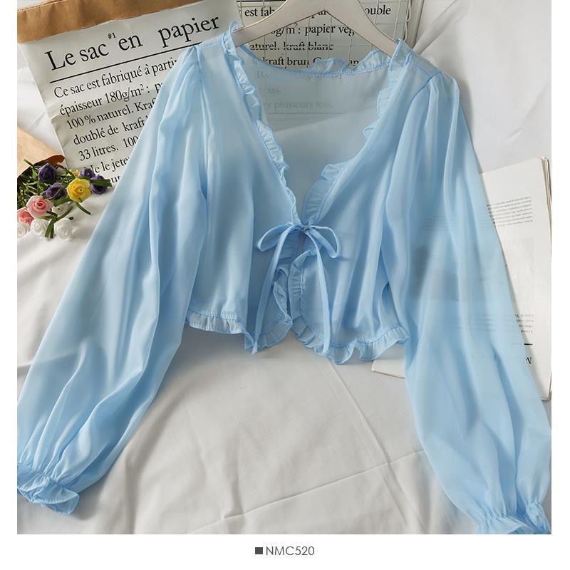 여성을위한 짧은 활 레이스 업 나무 귀 목도리 2024 여름 느슨한 긴 소매 올 매치 태양 보호 셔츠스토어 가기