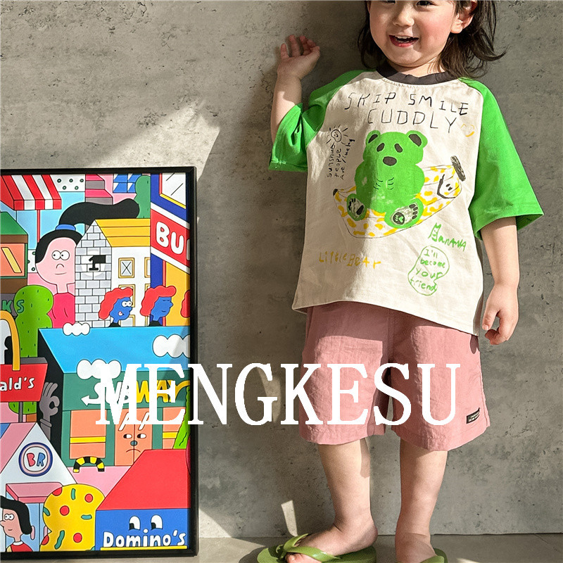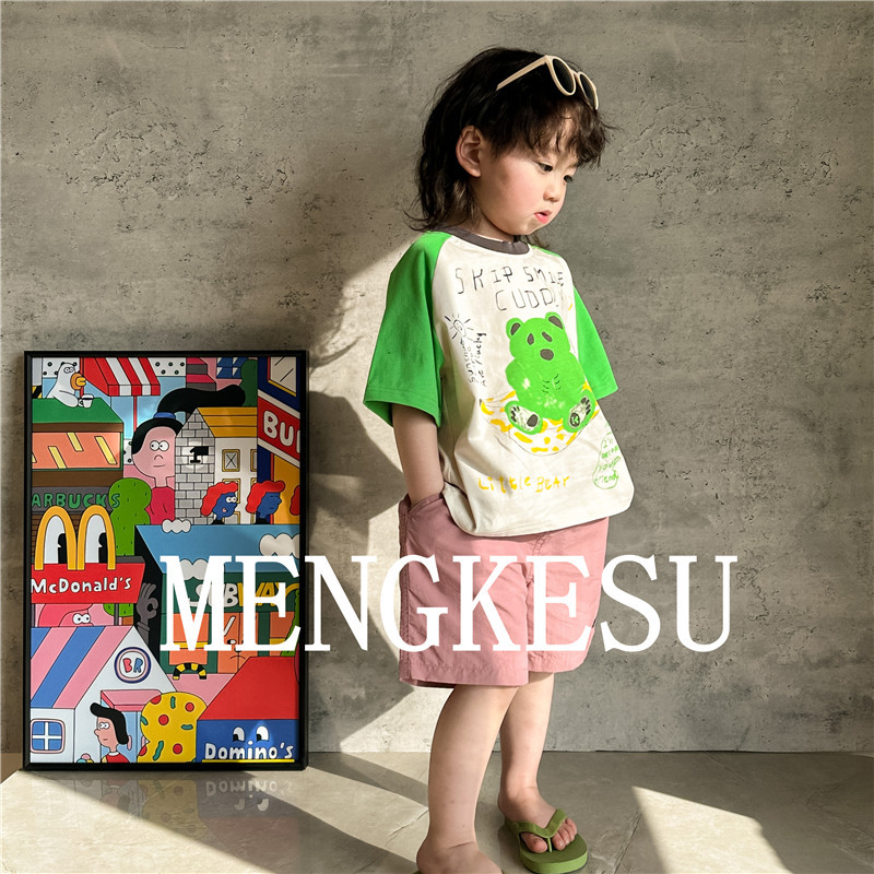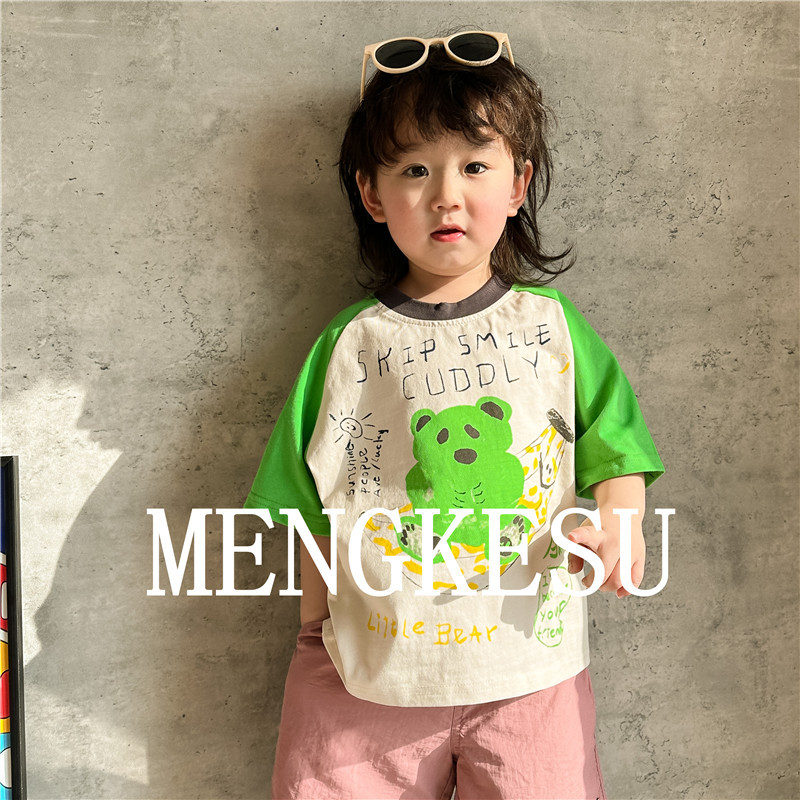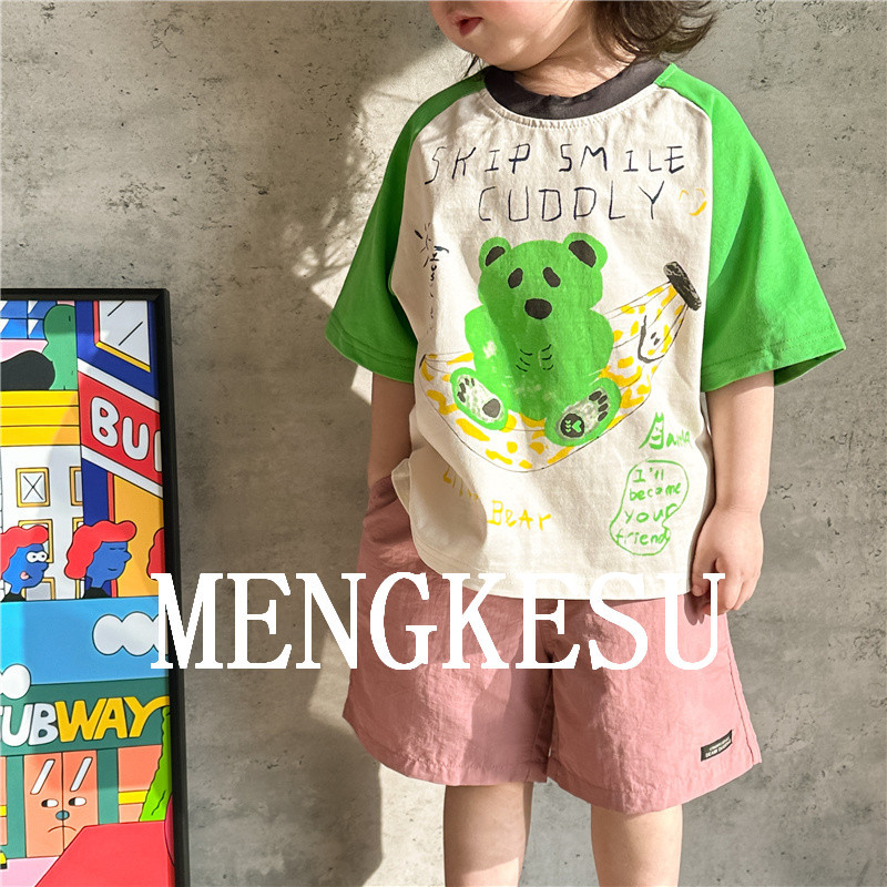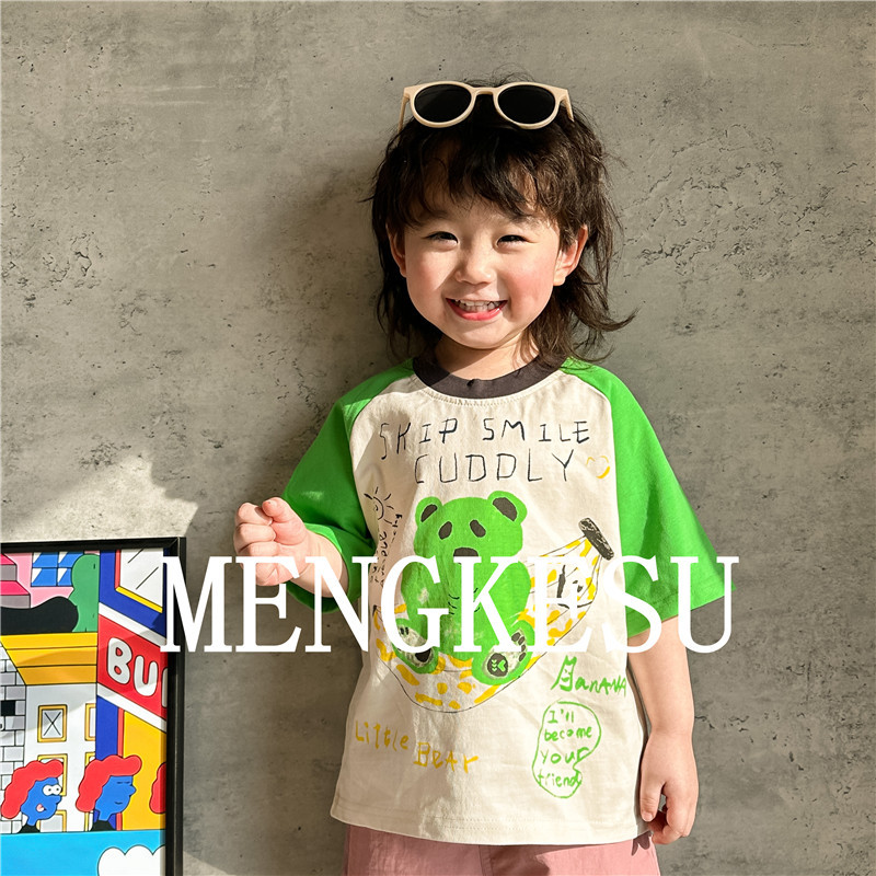 Moe Kesu 어린이 면화 반팔 티셔츠 2024 새 여름 소년 최고 어린이 티셔츠 아기 반소매 트렌디스토어 가기