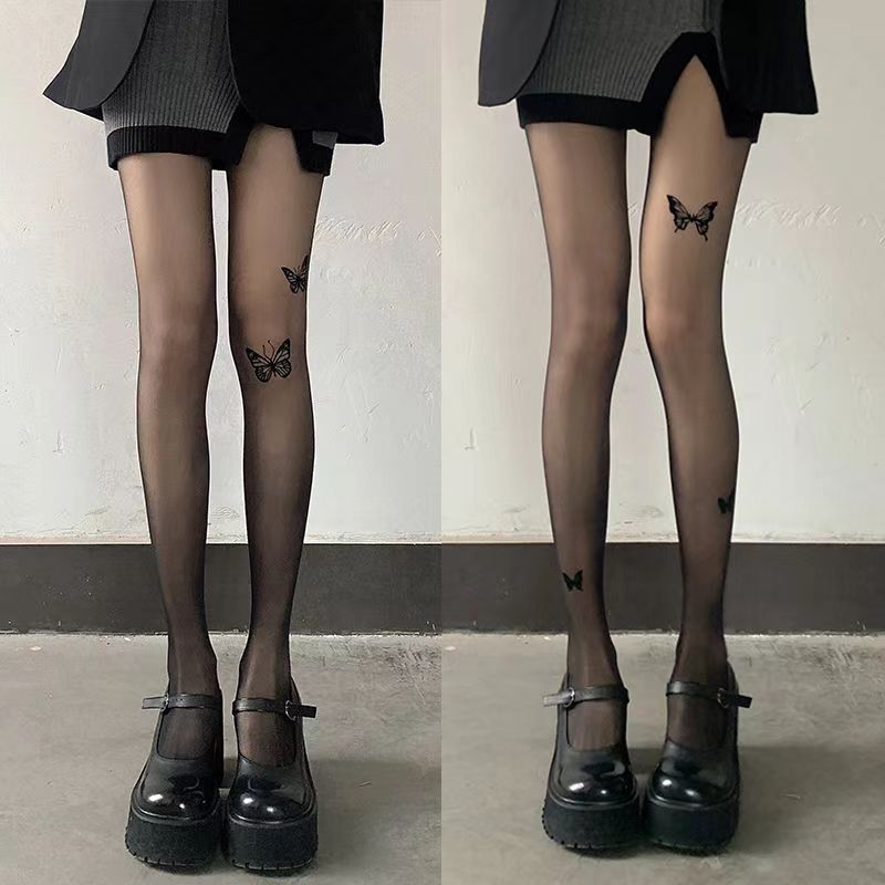 2024 아시아 문화 새로운 일본식 섹시한 피부색 나비 얇은 순수한 안티 주름 실크 바닥 팬티 스타킹 블랙 스타킹스토어 가기