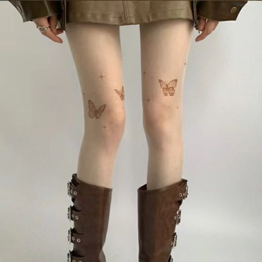 2024 아시아 문화 새로운 일본식 섹시한 피부색 나비 얇은 순수한 안티 주름 실크 바닥 팬티 스타킹 블랙 스타킹