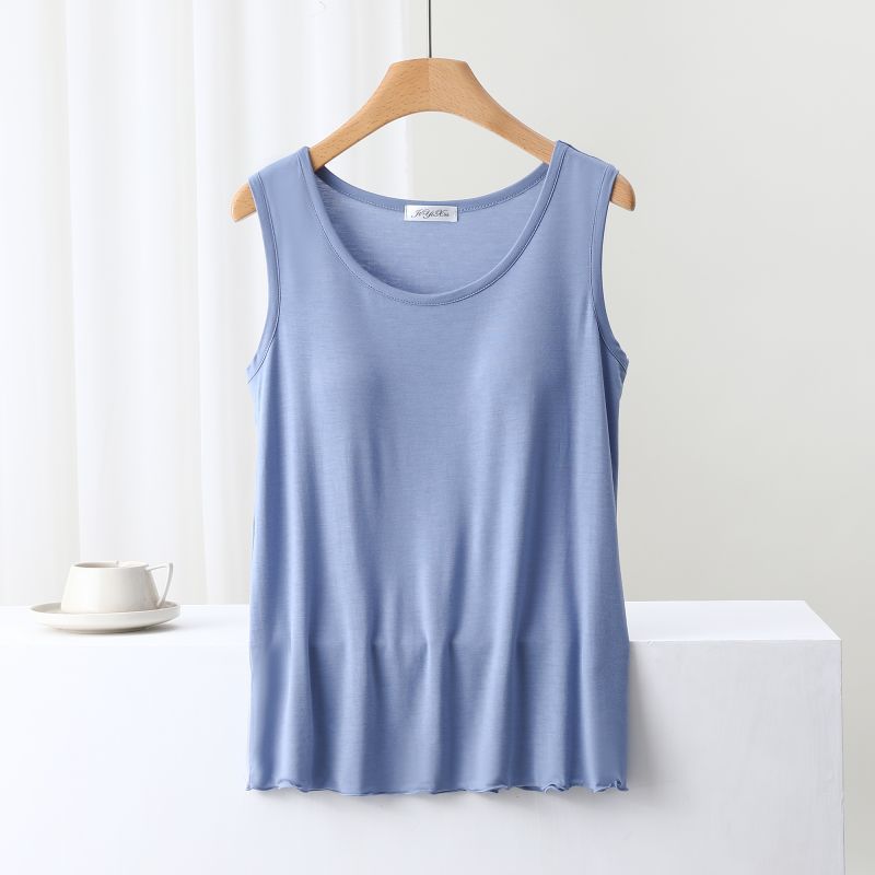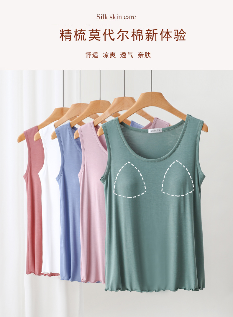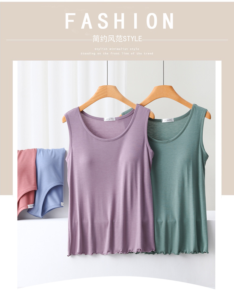 모달 조끼 여성 여름 튜브 탑 슬링 가슴 패드 상단 내부 기반 노출 방지 포장 된 가슴이있는 강철 링스토어 가기