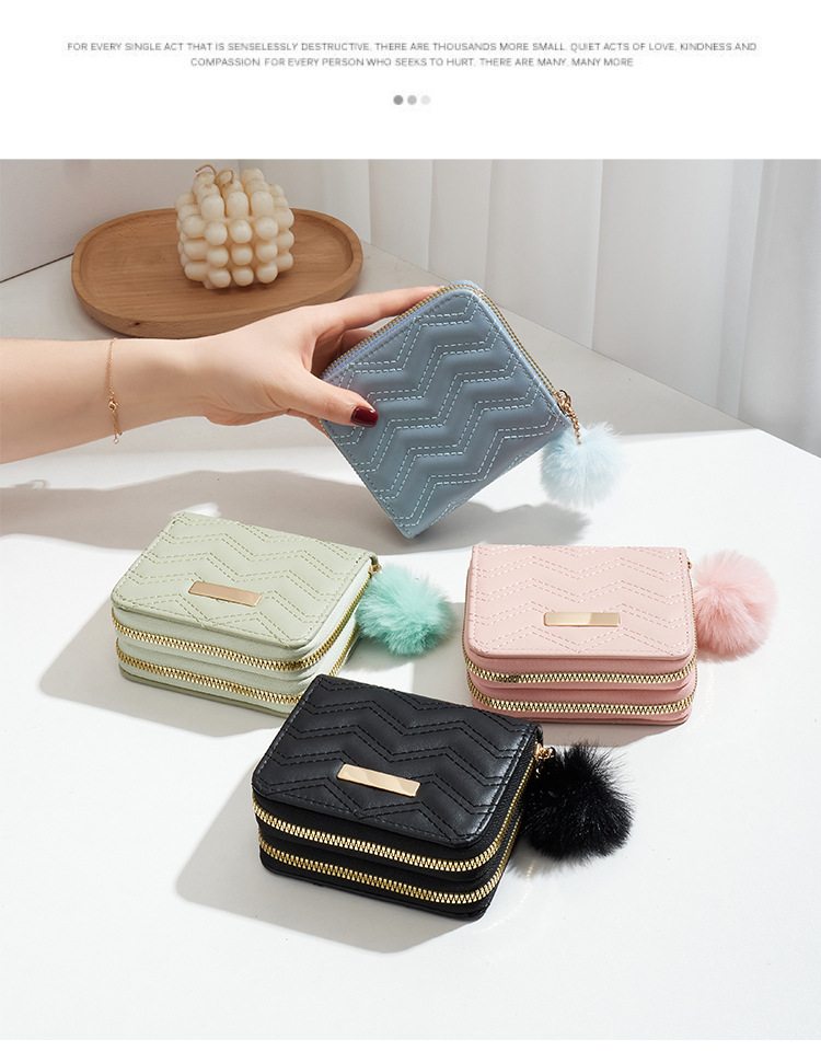 대외 무역 새로운 지갑 여성의 더블 지퍼 짧은 카드 홀더 인증서 백 클러치 패션 간단한 더블 레이어 지갑