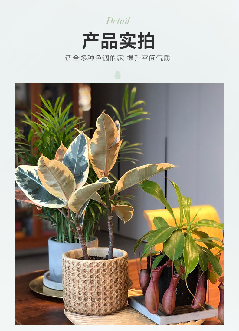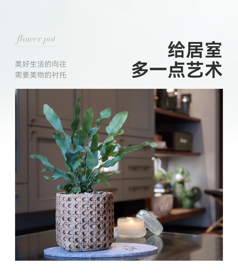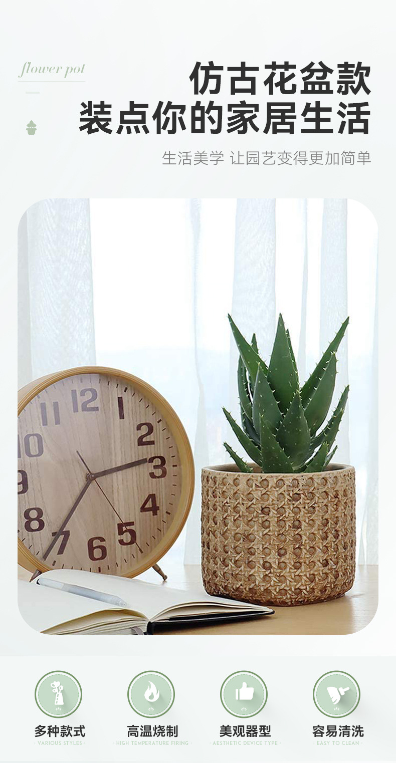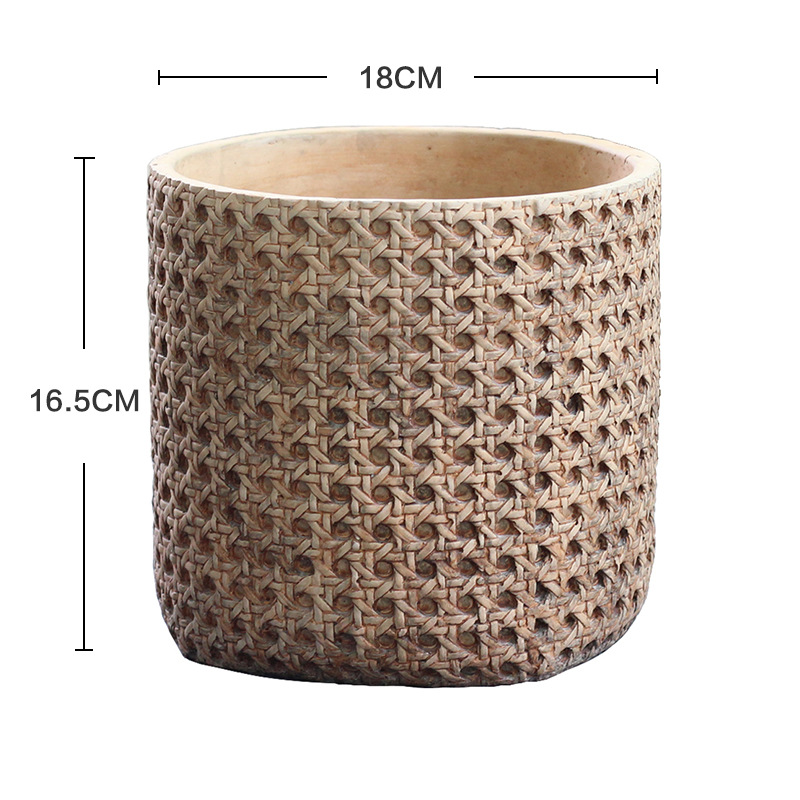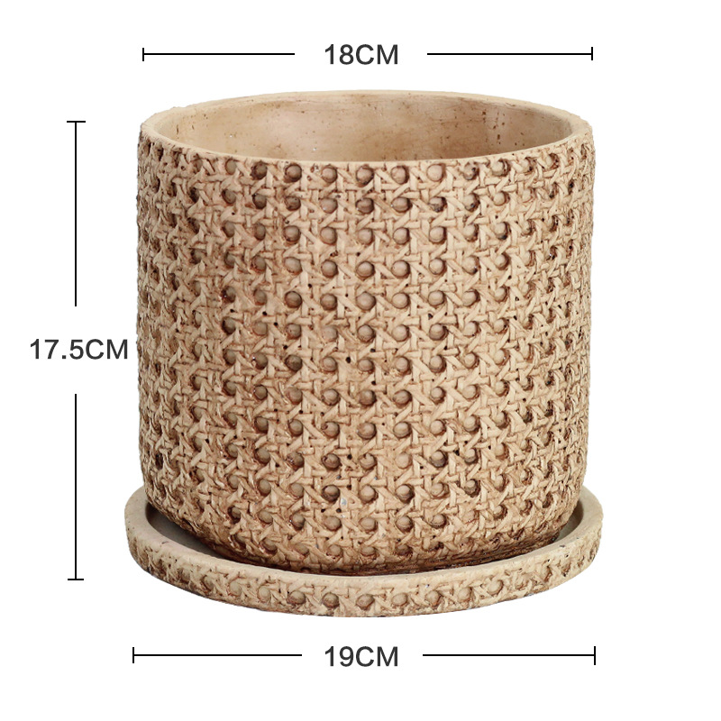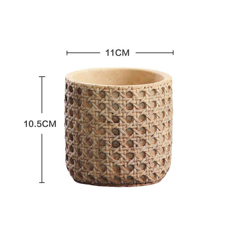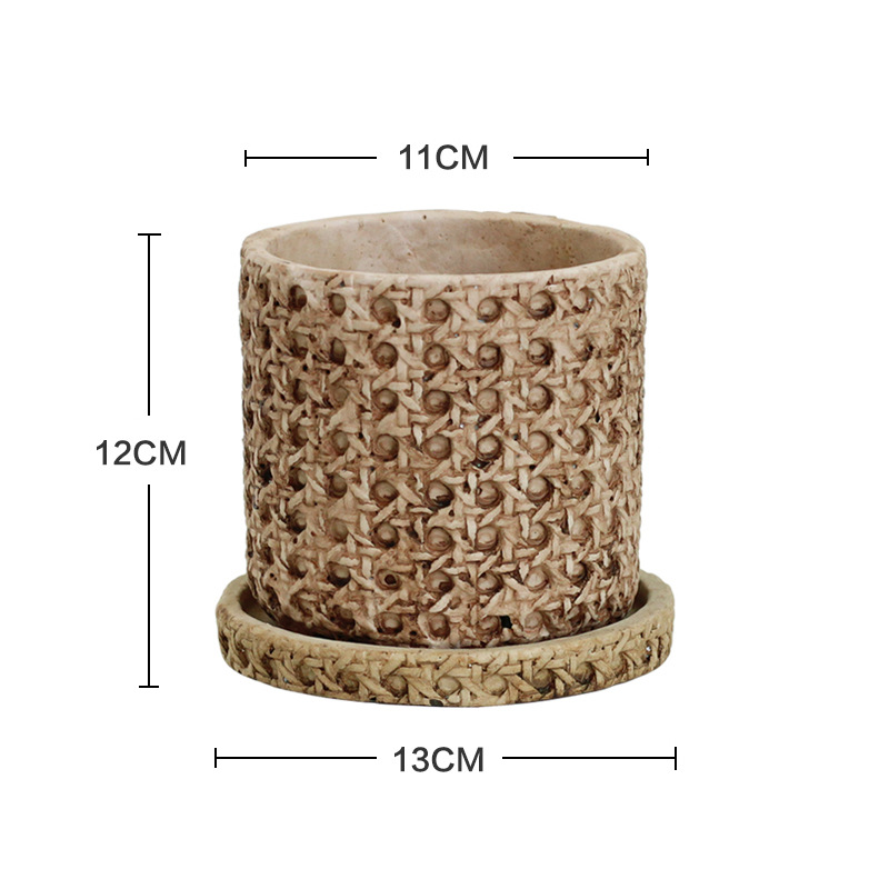 일본식 대나무 짠 등나무 짠 세라믹 냄비, 복고풍 시멘트 화분, 목재 스타일의 녹색 식물 냄비 세트스토어 가기