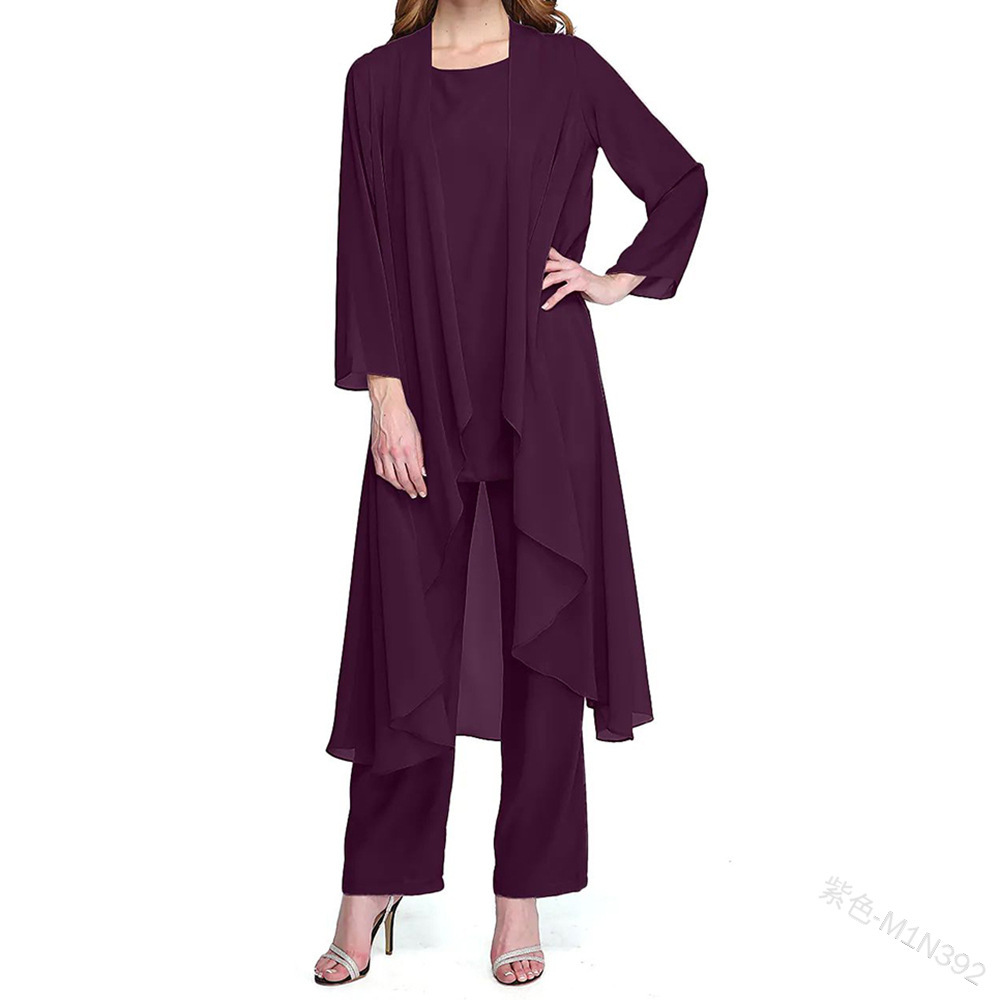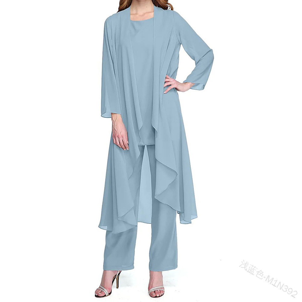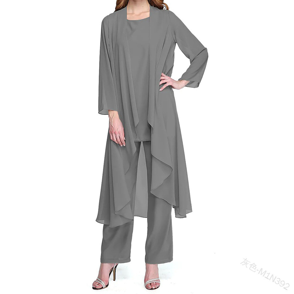 재고 국경 간 대외 무역 유럽과 미국의 기질 단색 세트 불규칙한 바지 쉬폰 3 피스 여성 의류 M1N392스토어 가기
