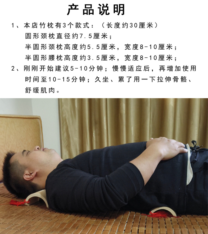 자궁 경부 베개 성인 목 보호 원통형 대나무 베개 반원형 목 대나무 튜브 U 자형 단단한 베개 요추 베개스토어 가기