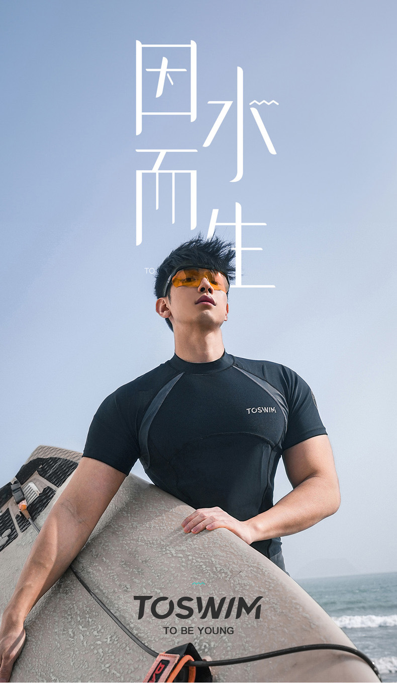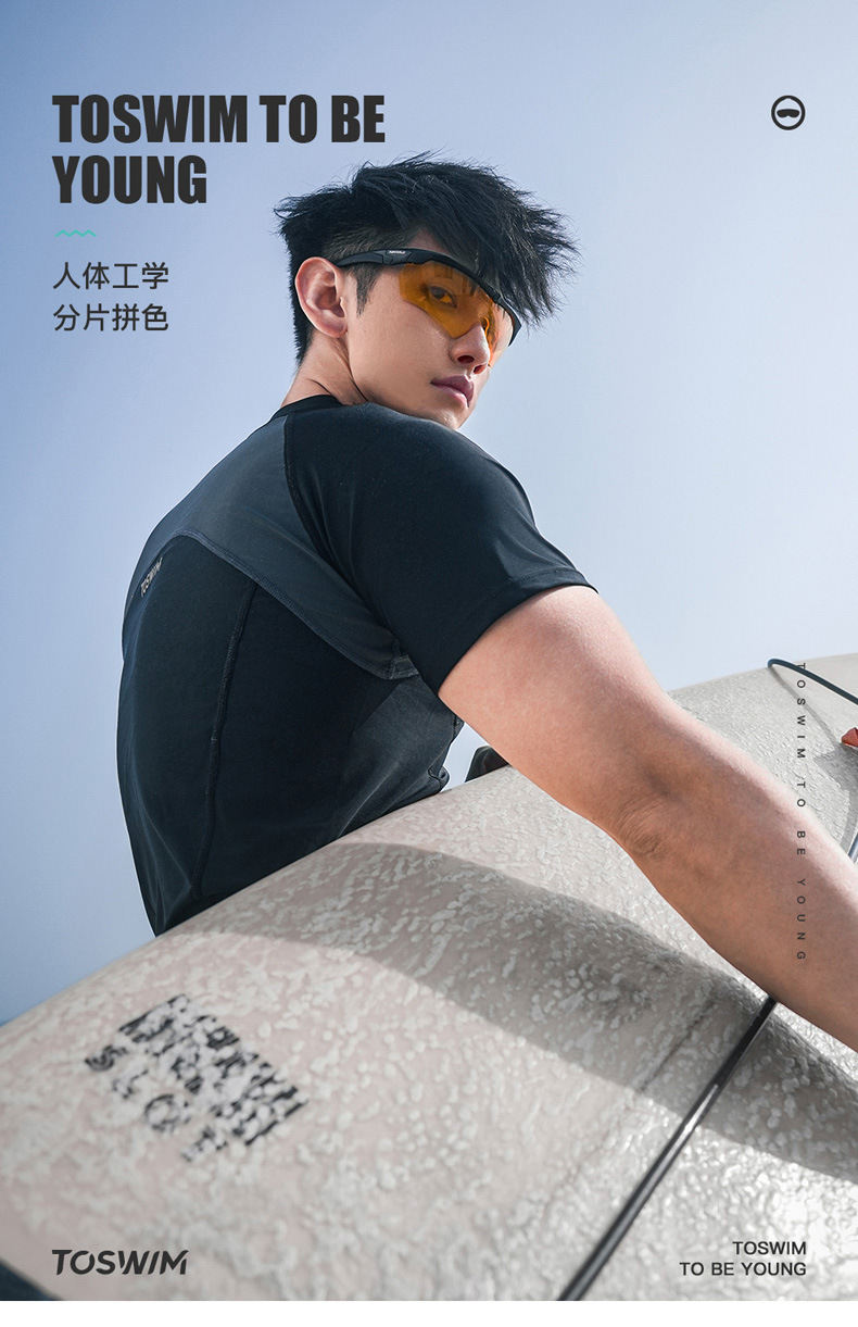 TOSWIM 남자 피트니스 야외 여름 슬림 다이빙 반팔 수영복 서핑 세트 캐주얼 수영복스토어 가기