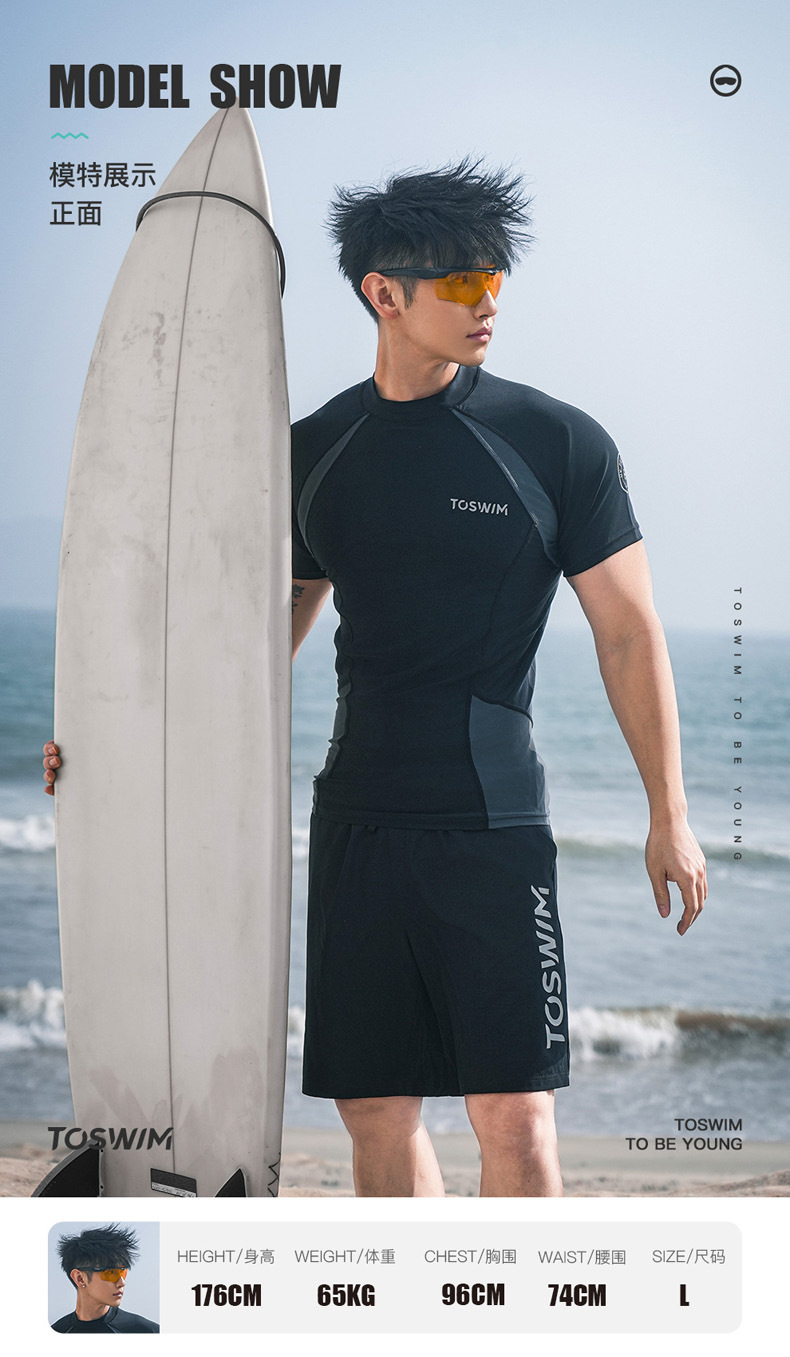 TOSWIM 남자 피트니스 야외 여름 슬림 다이빙 반팔 수영복 서핑 세트 캐주얼 수영복