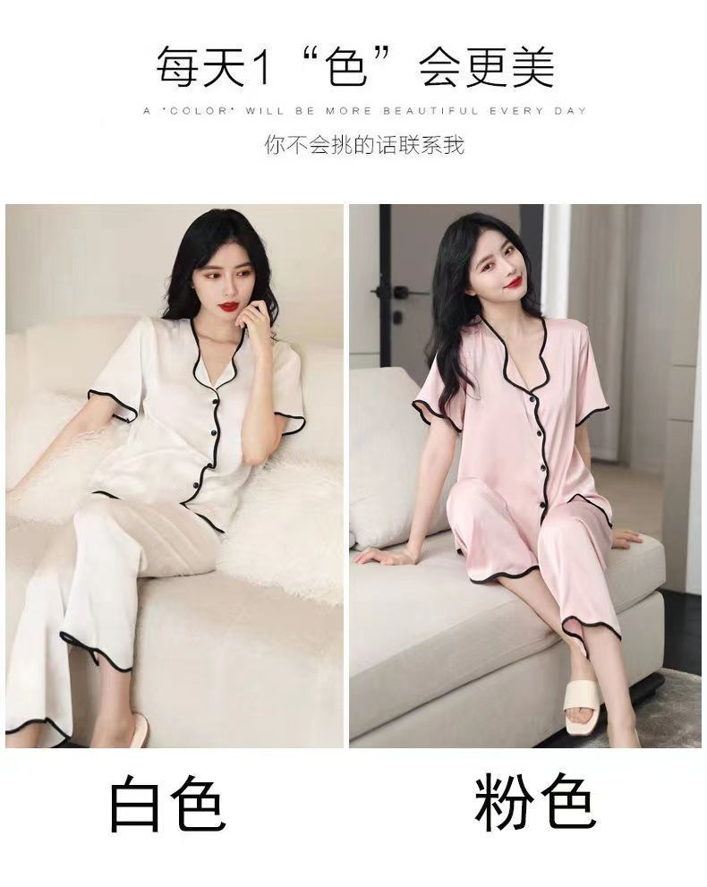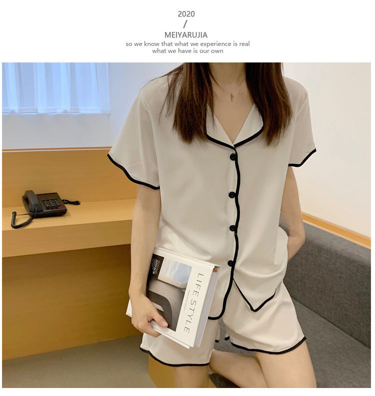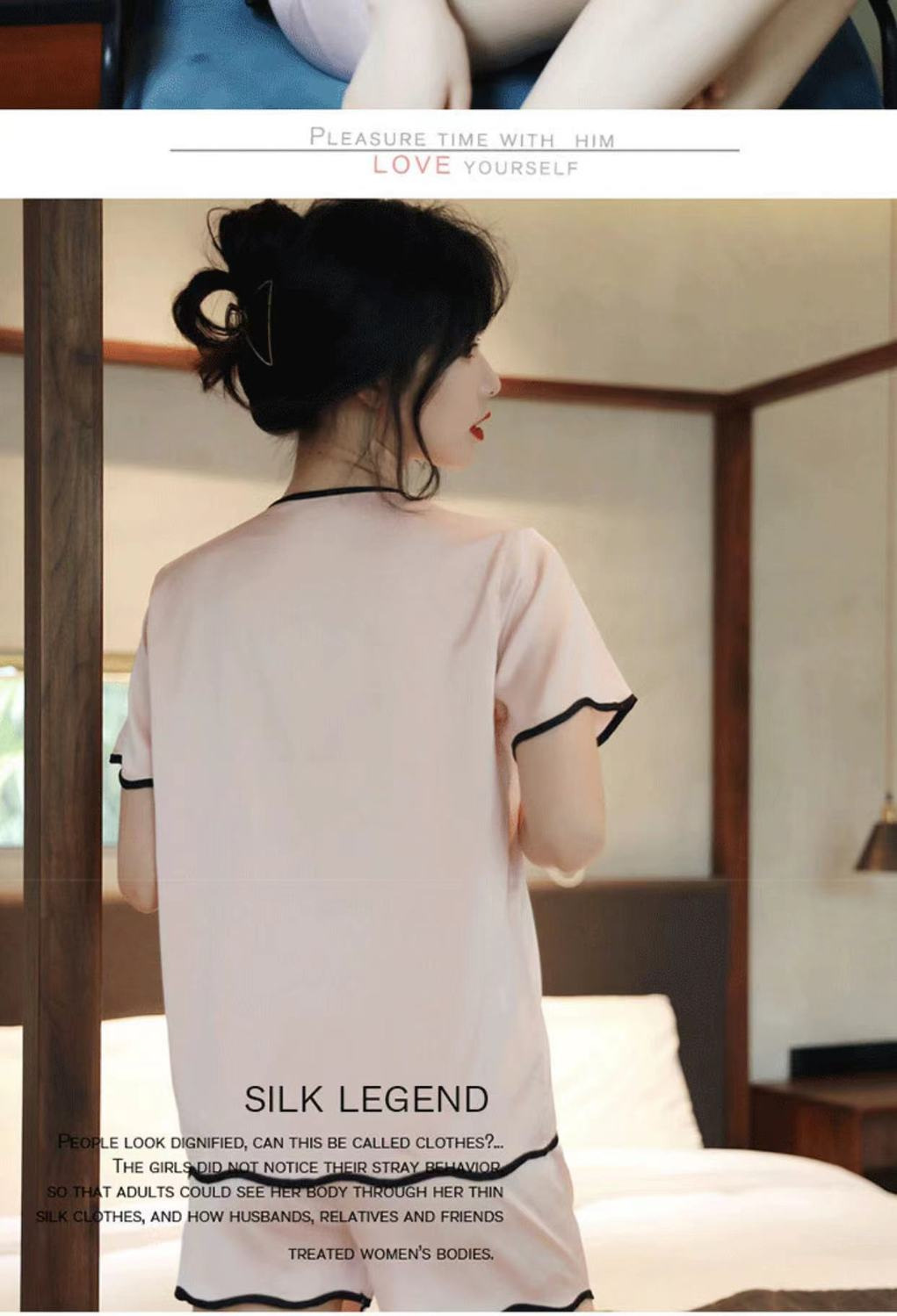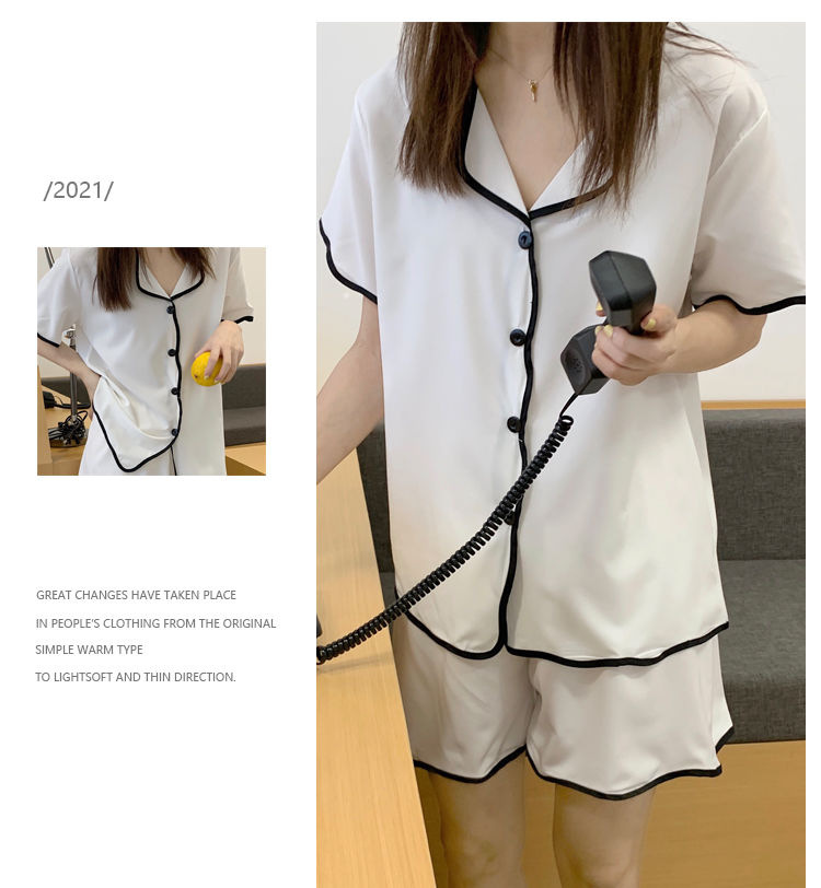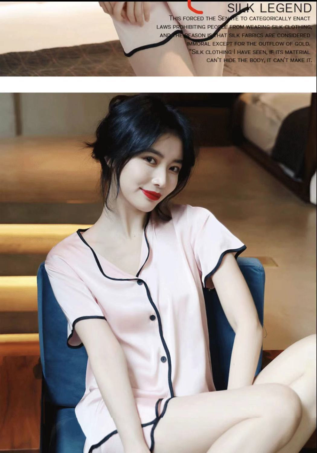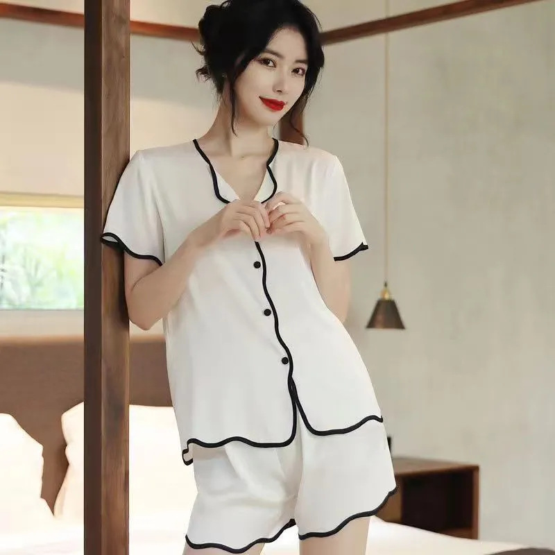 여성용 잠옷 여름 얇은 밀크 실크 2025 새로운 스타일의 심플한 반팔 반바지 대형 홈웨어 여성 정장스토어 가기