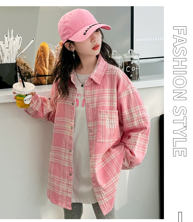 소녀 셔츠 봄 2024 새로운 어린이 봄과 가을 격자 무늬 카디건 미디어와 큰 아이들의 느슨한 세련된 셔츠 코트 패션스토어 가기