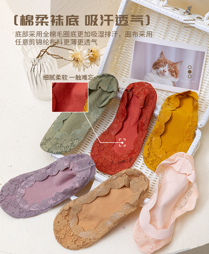 여름 신상 얕은 입구 레이스 실리콘 미끄럼 방지 끈이 빠지지 않는 통기성 투명 양말, 주지 양말 도매스토어 가기
