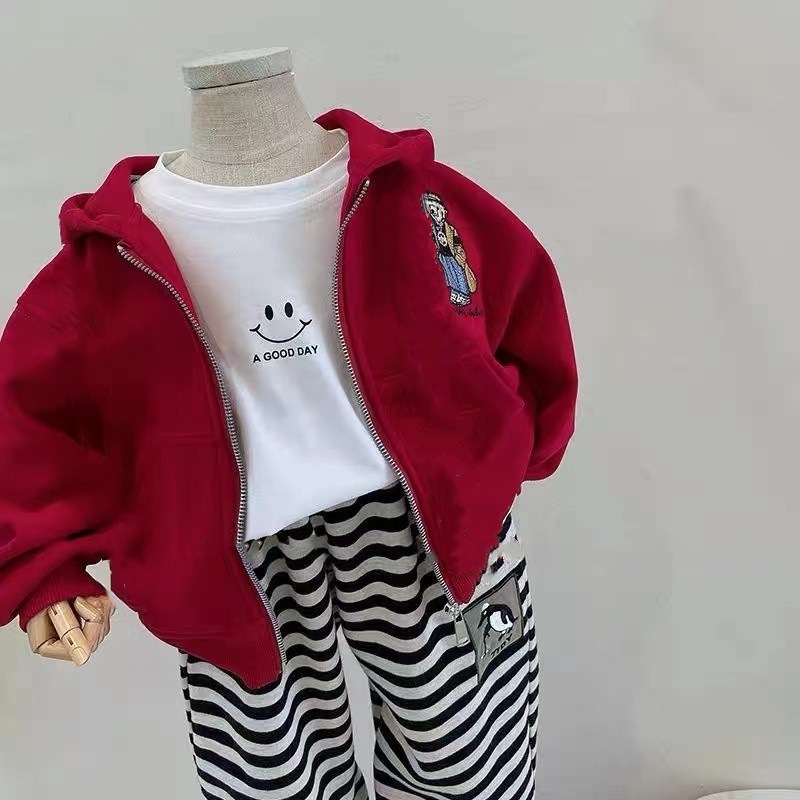 봄과 가을에 2024 곰 카디건 새 소년 소녀 카디건 아기 싱글 브레스트 스웨터 대학 봄스토어 가기