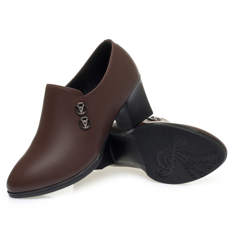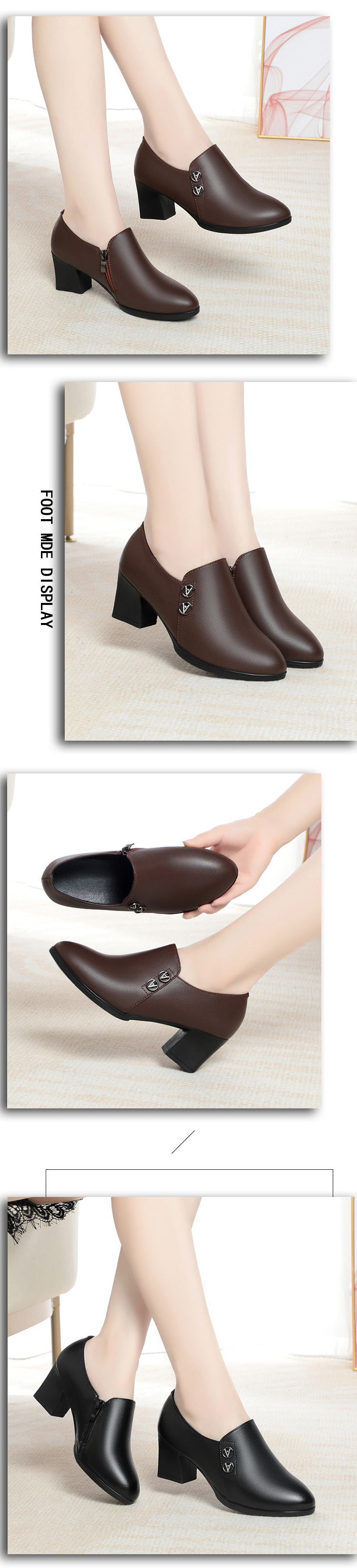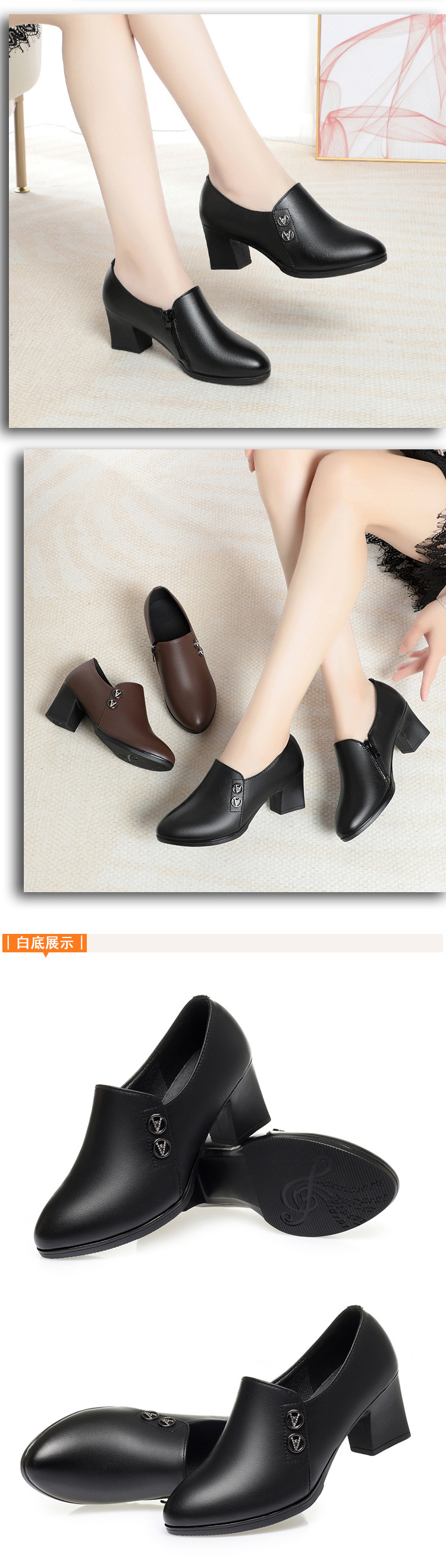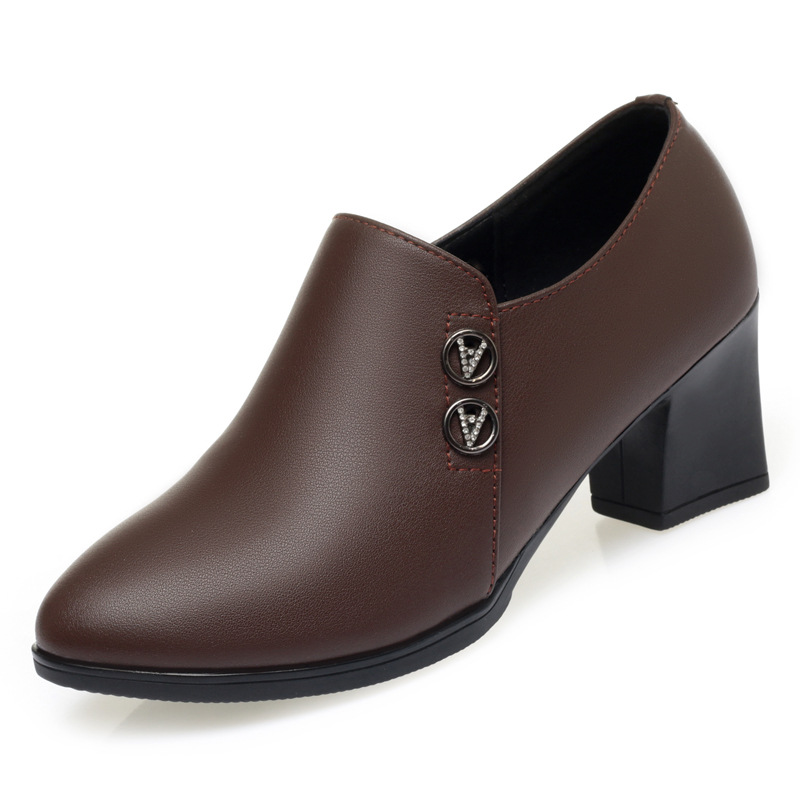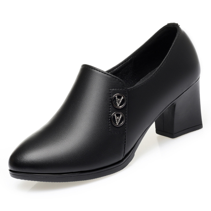 2024 새로운 봄과 가을 부드러운 가죽 싱글 레이어 신발 여성 청키 힐 작업 캐주얼 가죽 신발 미드 힐 편안한 엄마 신발 플러스 사이즈 기모스토어 가기