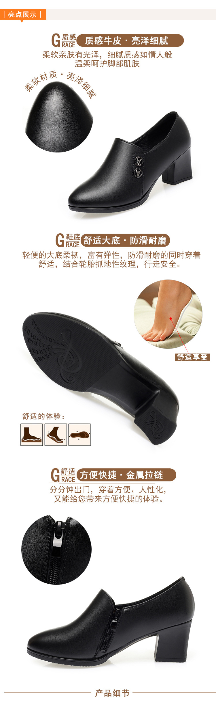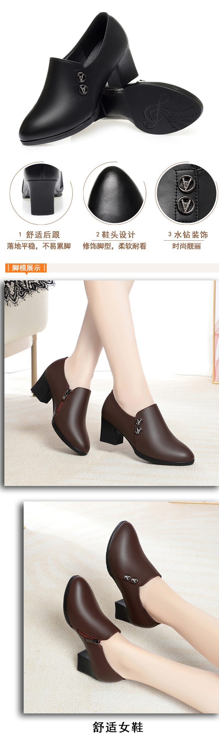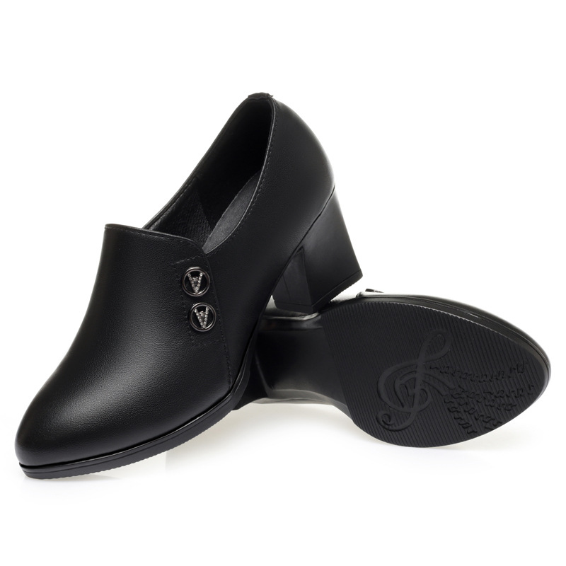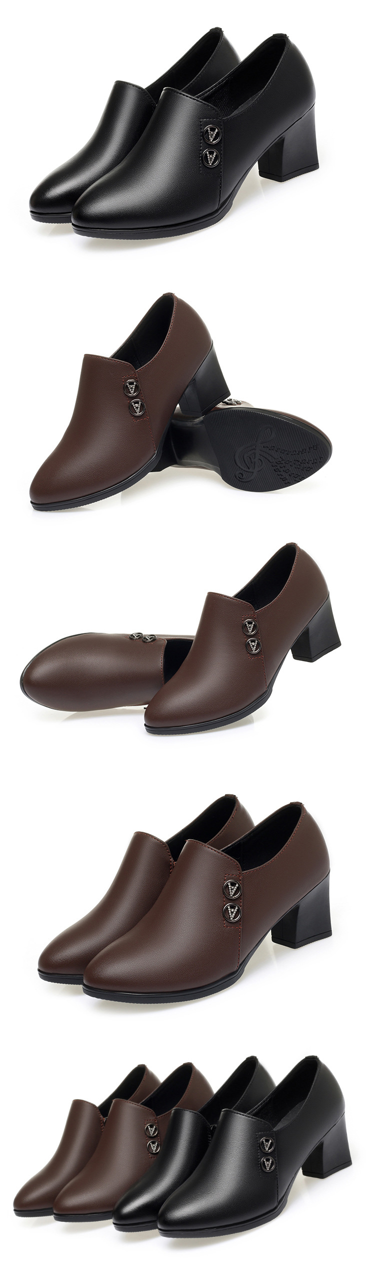 2024 새로운 봄과 가을 부드러운 가죽 싱글 레이어 신발 여성 청키 힐 작업 캐주얼 가죽 신발 미드 힐 편안한 엄마 신발 플러스 사이즈 기모스토어 가기