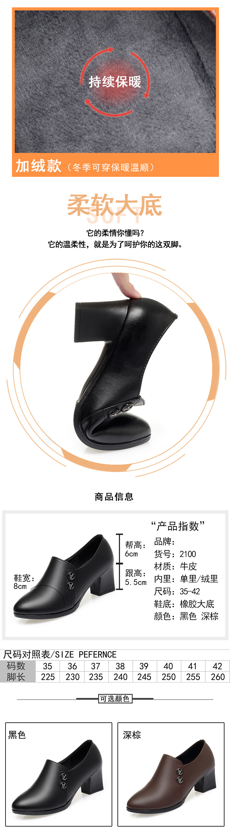 2024 새로운 봄과 가을 부드러운 가죽 싱글 레이어 신발 여성 청키 힐 작업 캐주얼 가죽 신발 미드 힐 편안한 엄마 신발 플러스 사이즈 기모