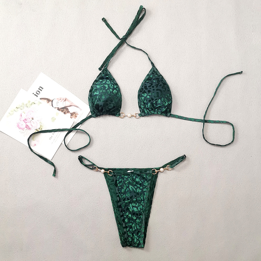 新款·墨绿色豹纹金丝绒比基尼bikini