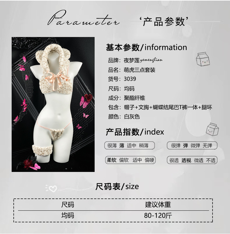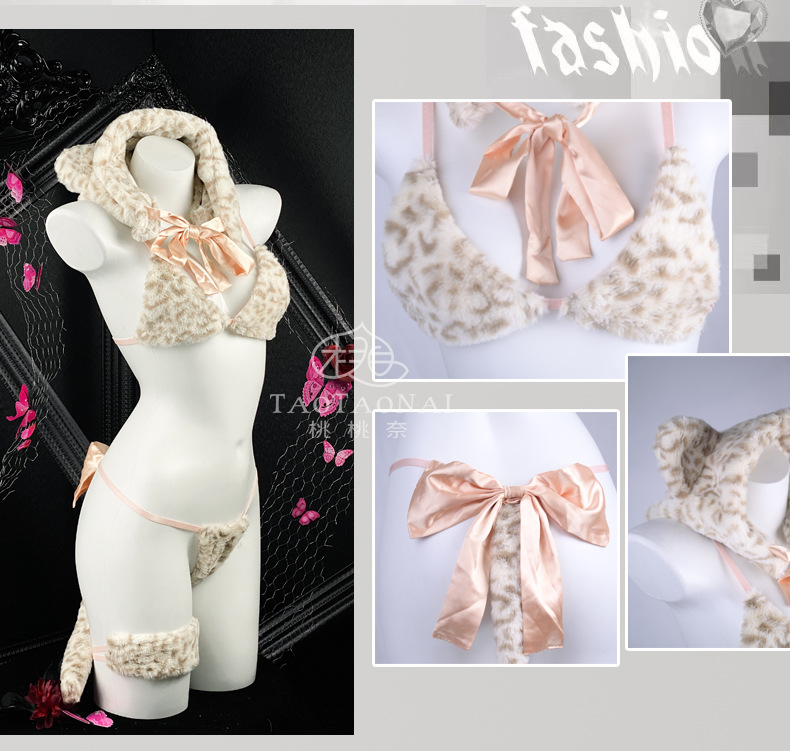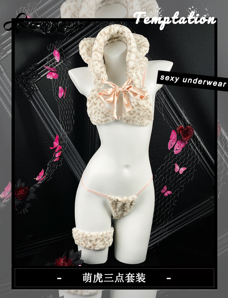 섹시한 캣우먼 커플 재미있는 속옷 봉제 귀여운 호랑이 3 점 유니폼 세트 유혹 섹시한 란제리 세트스토어 가기