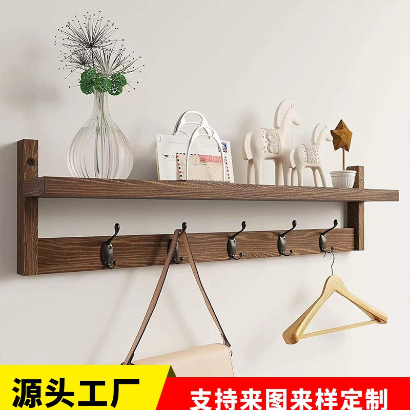 단단한 나무 벽 랙 복도 욕실 스토리지 랙 나무 장식 코트 랙 창조적 인 이동식 후크 스토리지 랙
