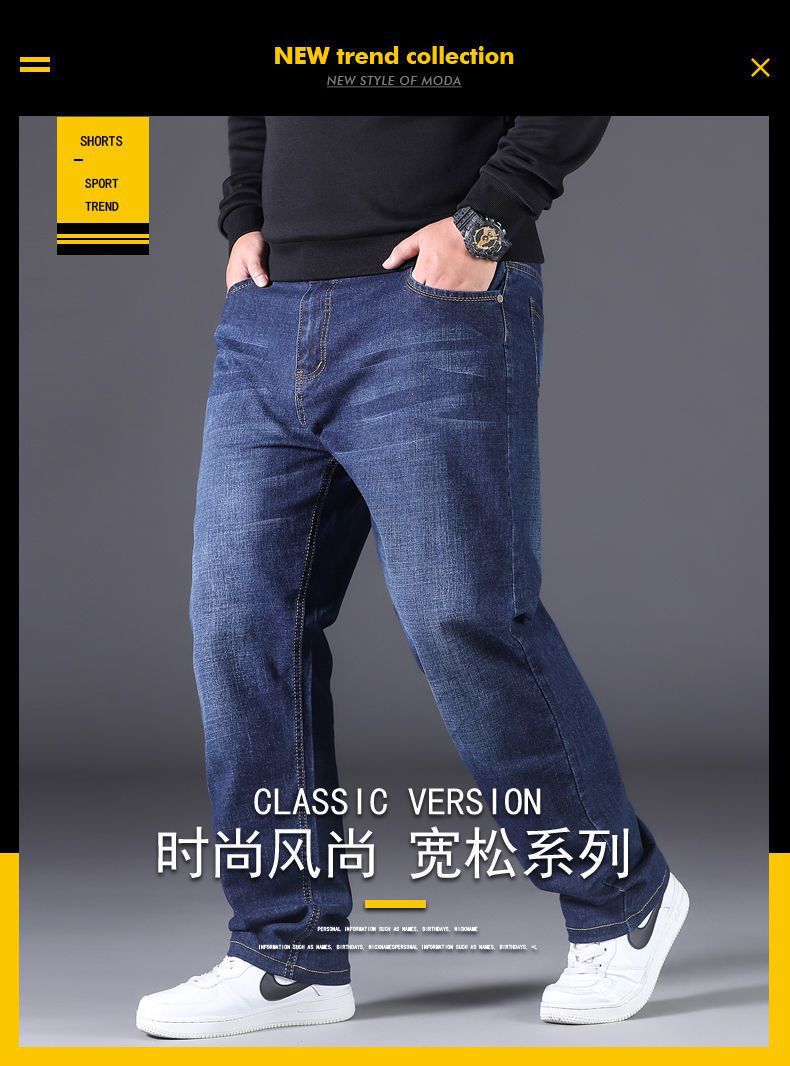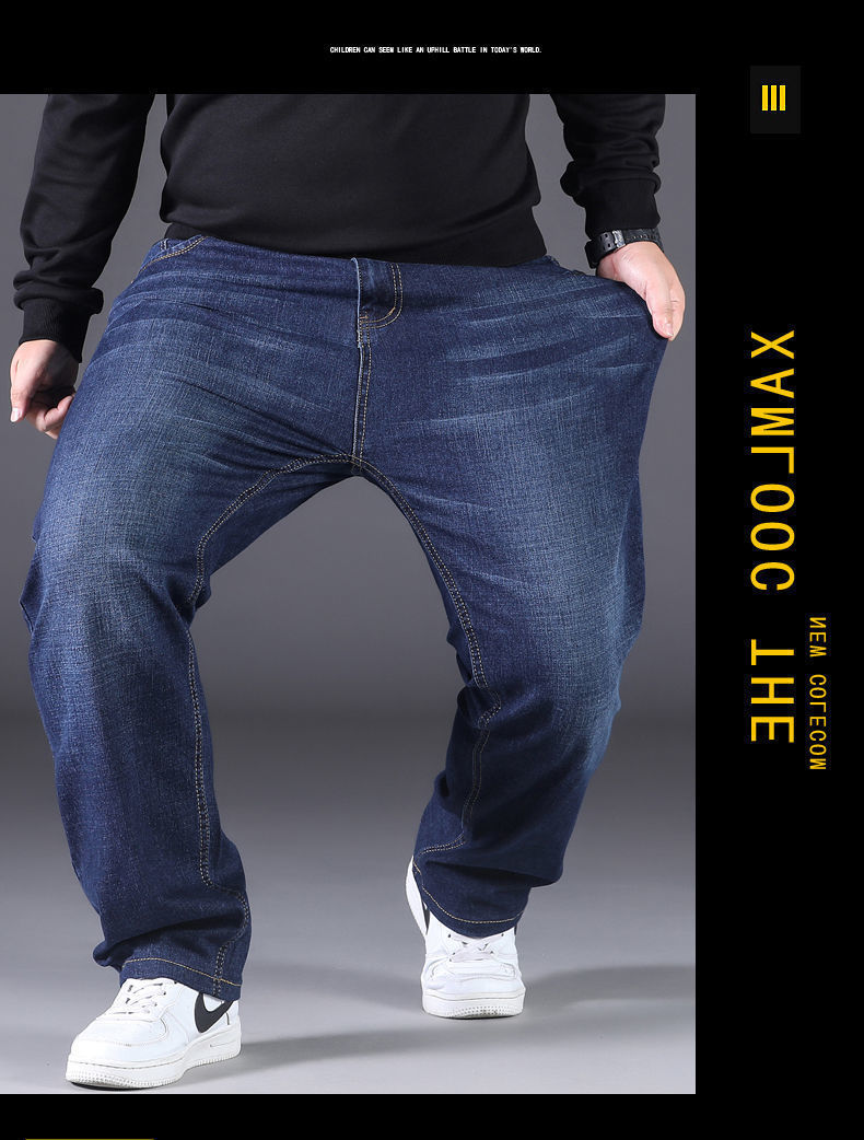대형 남성 청바지 느슨한 스트레이트 하이 웨이스트 남성 바지 지방 남성 플러스 사이즈 스트레치 바지스토어 가기