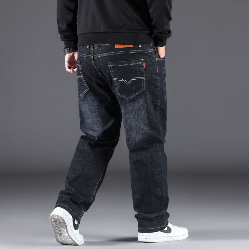 대형 남성 청바지 느슨한 스트레이트 하이 웨이스트 남성 바지 지방 남성 플러스 사이즈 스트레치 바지