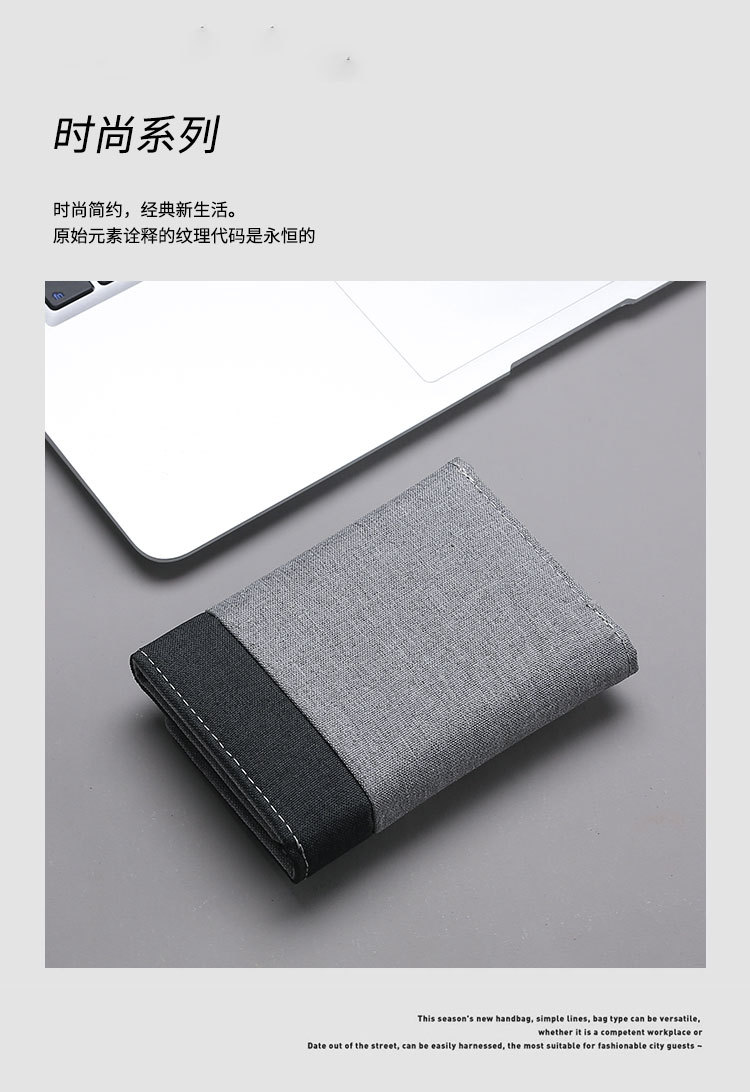 캔버스 지갑 남자의 짧은 학생 작은 지갑 카드 홀더 간단한 명암 데님 트라이 폴드 지갑 스팟 도매