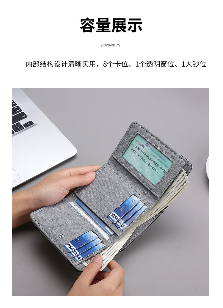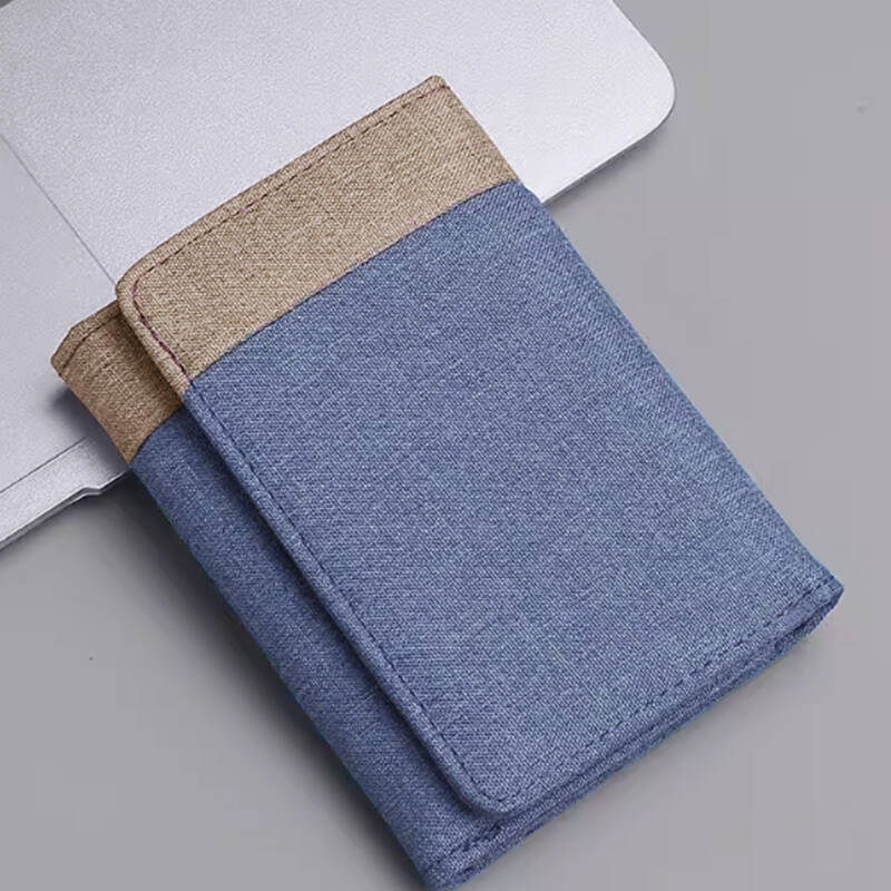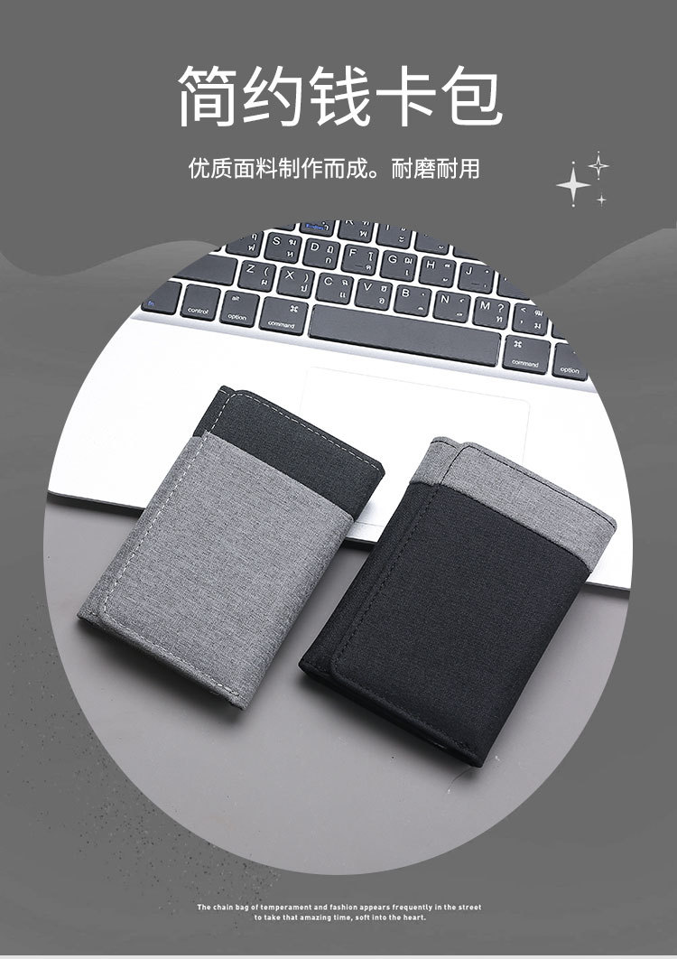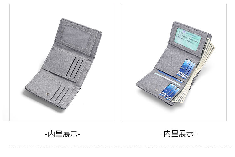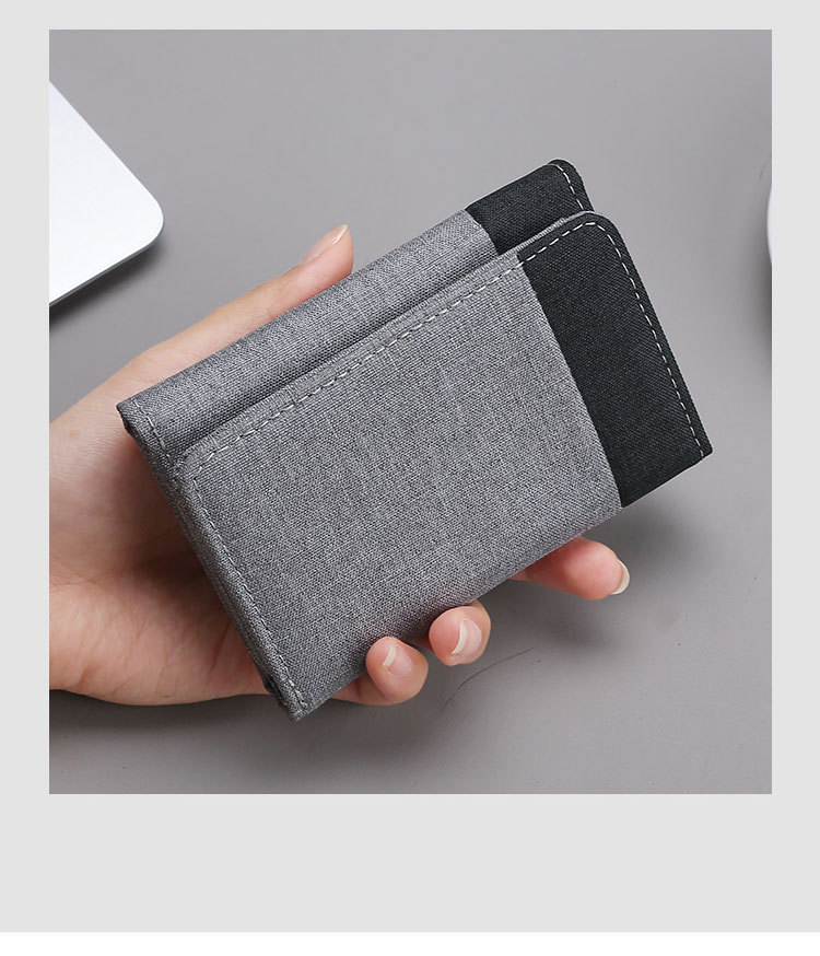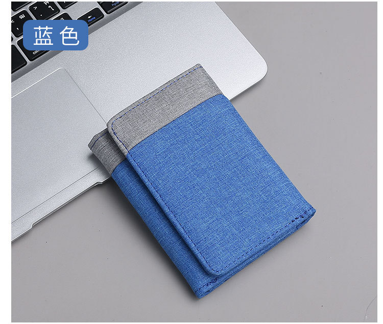캔버스 지갑 남자의 짧은 학생 작은 지갑 카드 홀더 간단한 명암 데님 트라이 폴드 지갑 스팟 도매스토어 가기