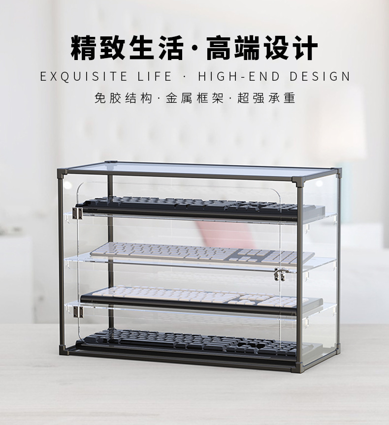 투명 키보드 디스플레이 랙 아크릴 스토리지 다층 합금 프레임 컬렉션 캐비닛 데스크탑 스토리지 랙 방진 스토리지 랙