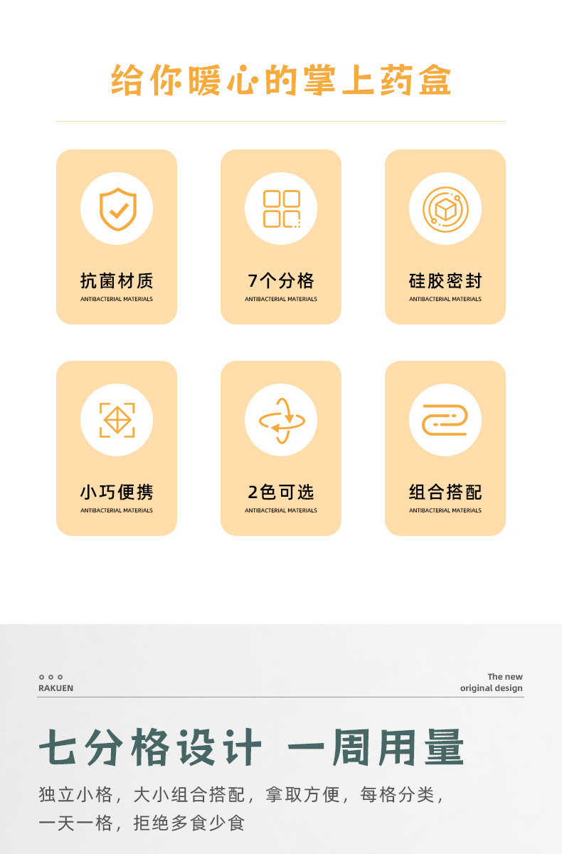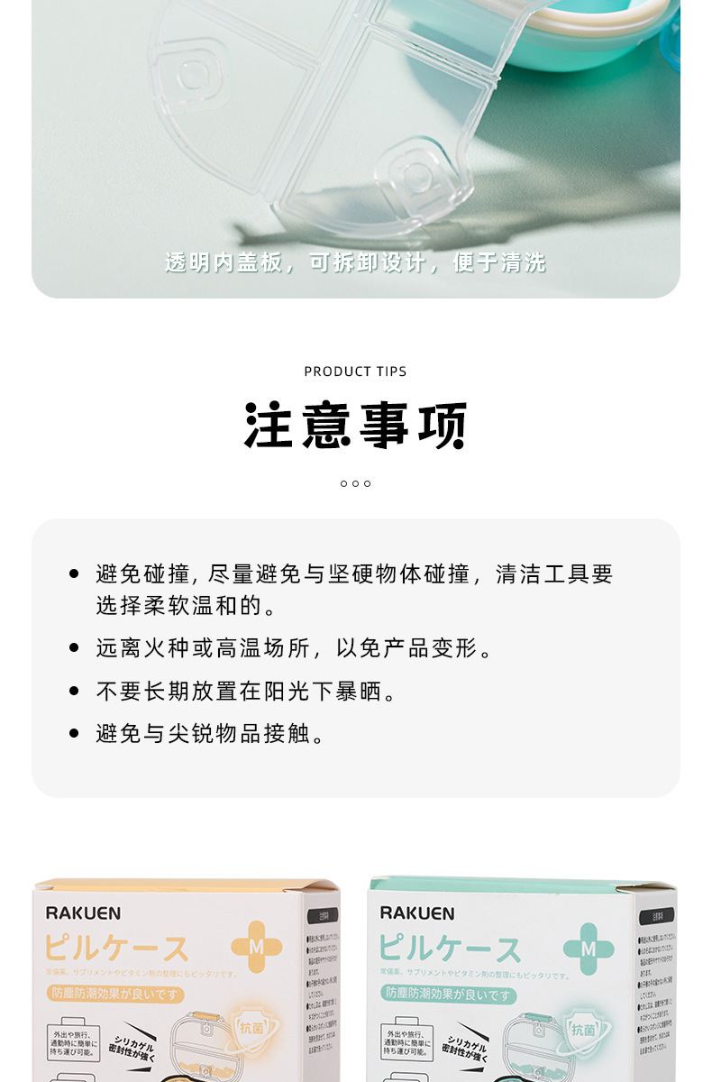 일본 라키엔 휴대용 알약 상자 7 일 1 주 대용량 태블릿 알약 포장 상자 보석 이어 스터드 보관 상자스토어 가기