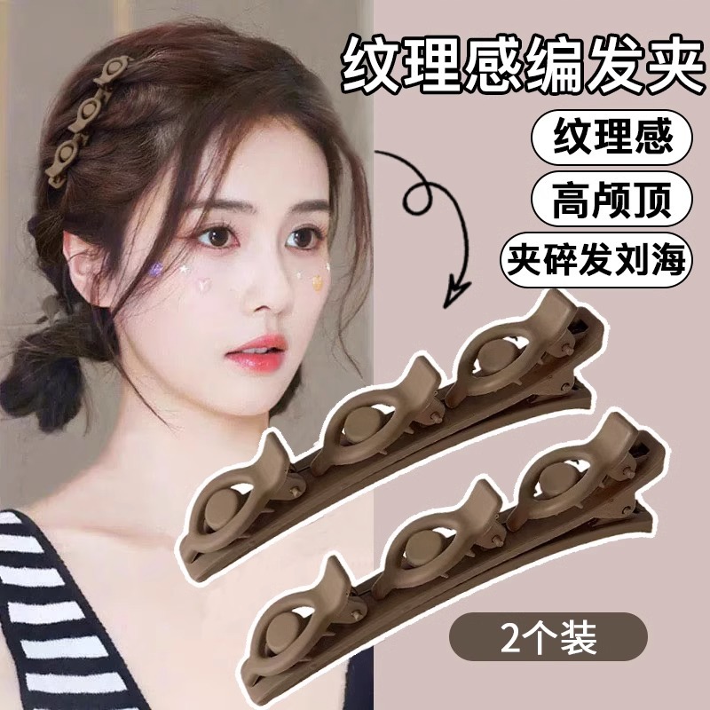 • 10 # 어두운 다크 브라운 간단한 꼰 헤어 클립 2 피스 세트