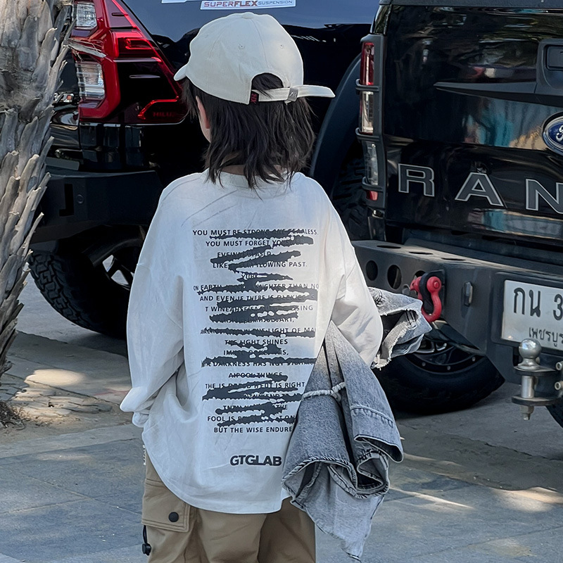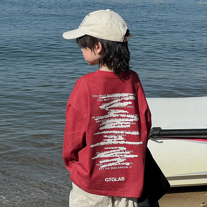 소년 티셔츠 긴소매 2024 어린이 봄 한국 스타일 기본 미디어와 큰 어린이 캐주얼 레터 라운드 넥 티셔츠