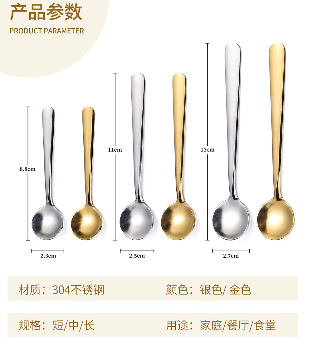 304 미니 스푼 스테인레스 스틸 혼합 숟가락 맛 소금 조미료 스푼 스몰 사이즈 숟가락 황금 둥근 숟가락 우유 가루 숟가락