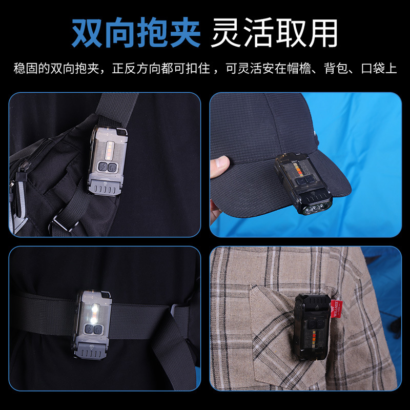 特色功能:小巧轻便,头部可80度调节角度,磁吸功能,抱夹