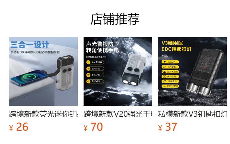 产品配置:手电筒+绳子+USB线+说明书+钥匙圈+盒子