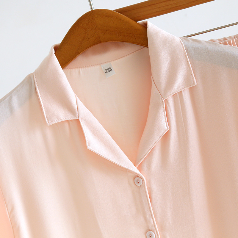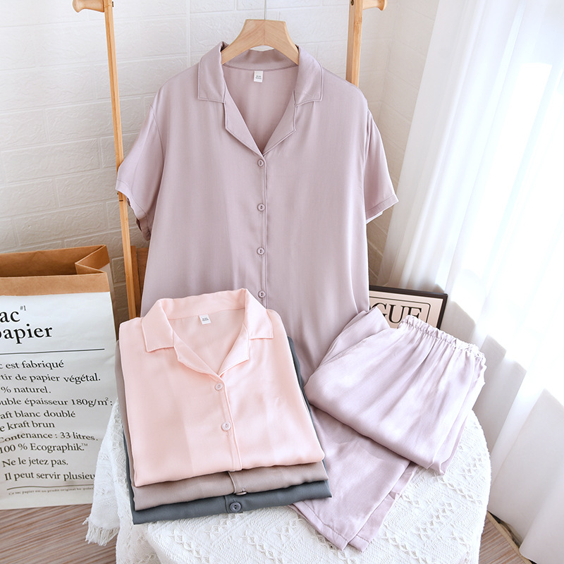 봄과 여름 얇은면 실크 파자마 새틴 반팔 바지 커플 세트 실키 남성용 고급 홈웨어 세트스토어 가기
