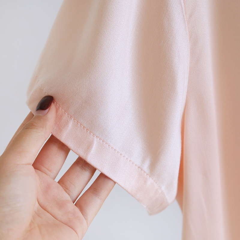 • -새틴 단색 짧은 긴 세트 여성 오렌지 핑크