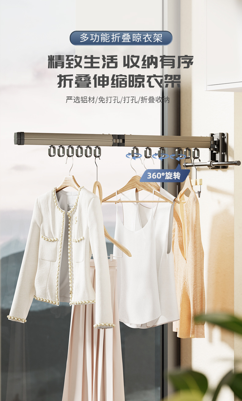접이식 옷 랙 실내 벽 매달려 보이지 않는 크로스바 슬라이딩 후크 개폐식 옷 건조 막대 가정용 발코니 옷 건조 유물스토어 가기