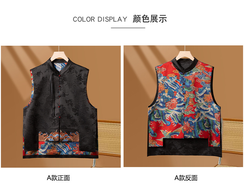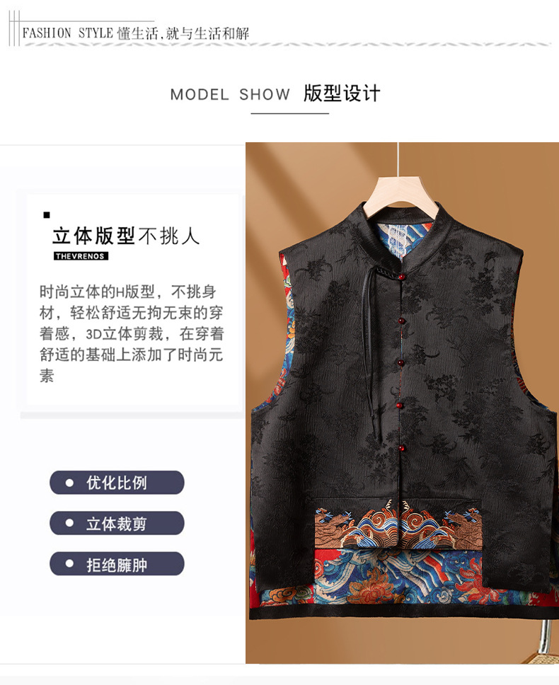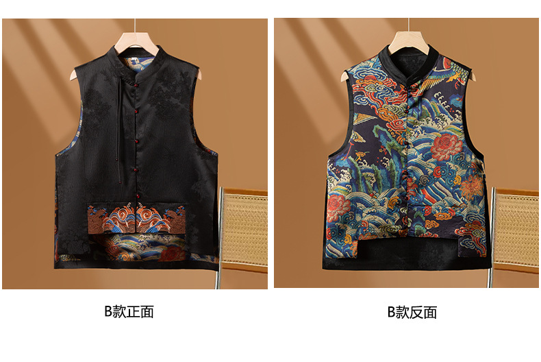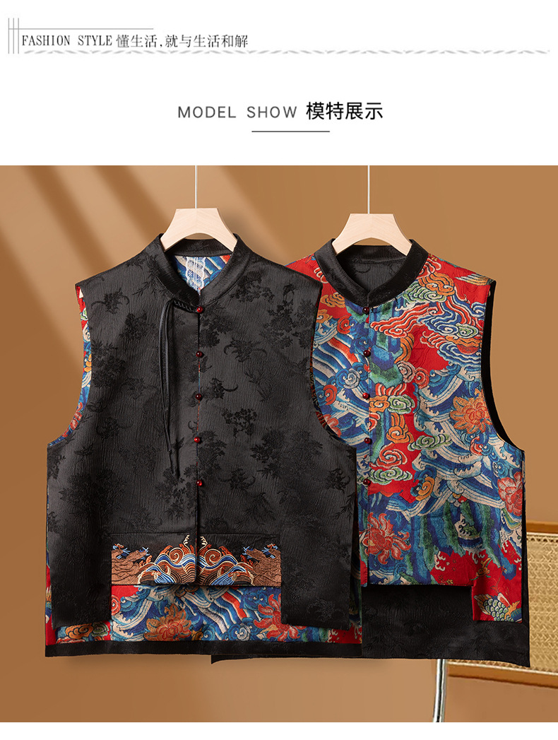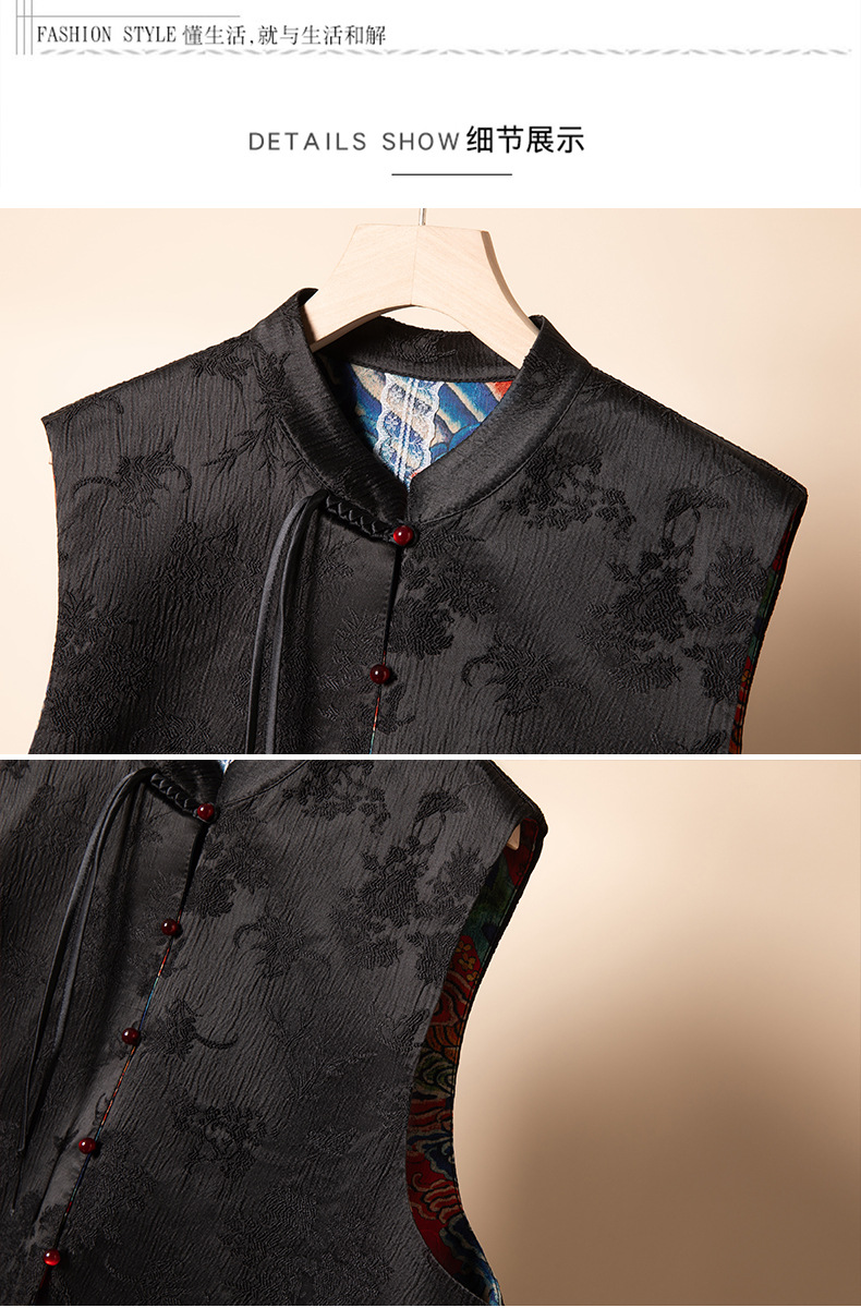 새로운 중국 스타일 중국 스타일 조끼 양면 복고풍 버클 민족 스타일 새로운 가을 웨이브 자카드 최고 여성 의류스토어 가기