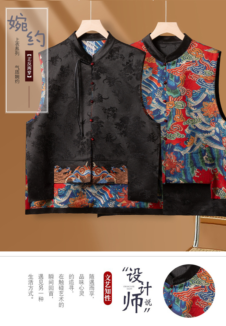 새로운 중국 스타일 중국 스타일 조끼 양면 복고풍 버클 민족 스타일 새로운 가을 웨이브 자카드 최고 여성 의류