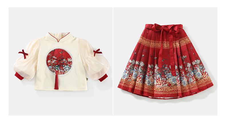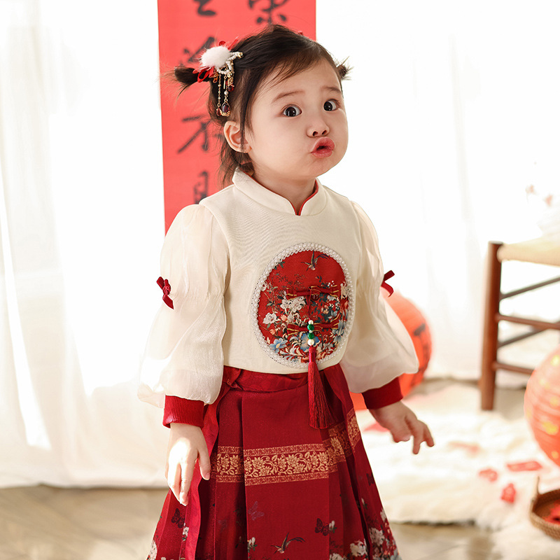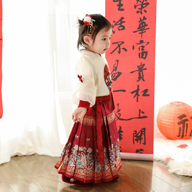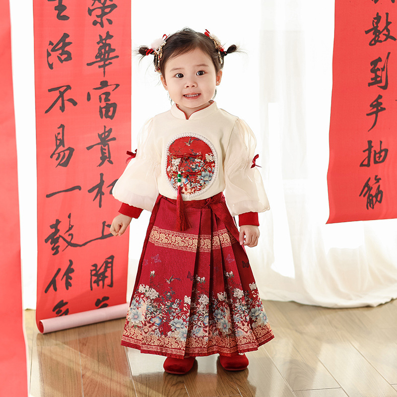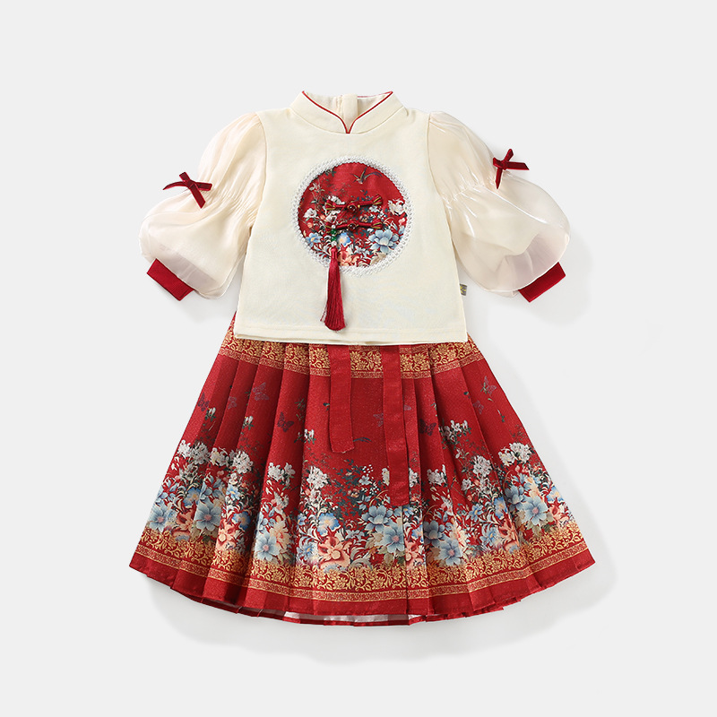 어린이 한푸 세트 봄 새로운 중국 스타일 맥시 원피스 세트 명나라 긴 소녀의 새해 복 도매