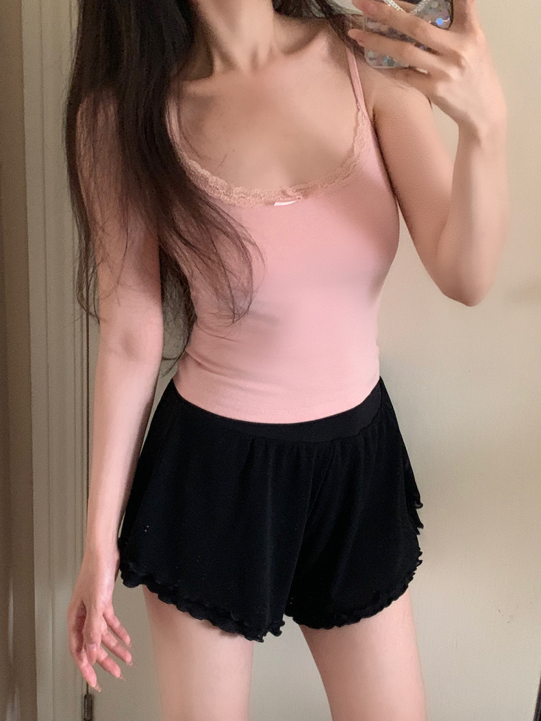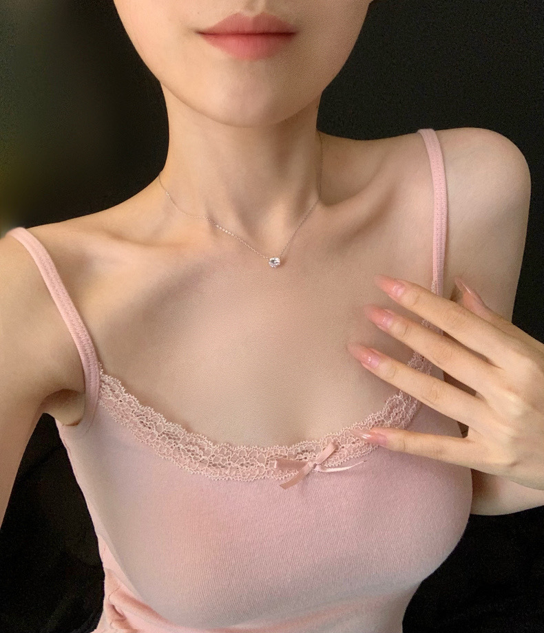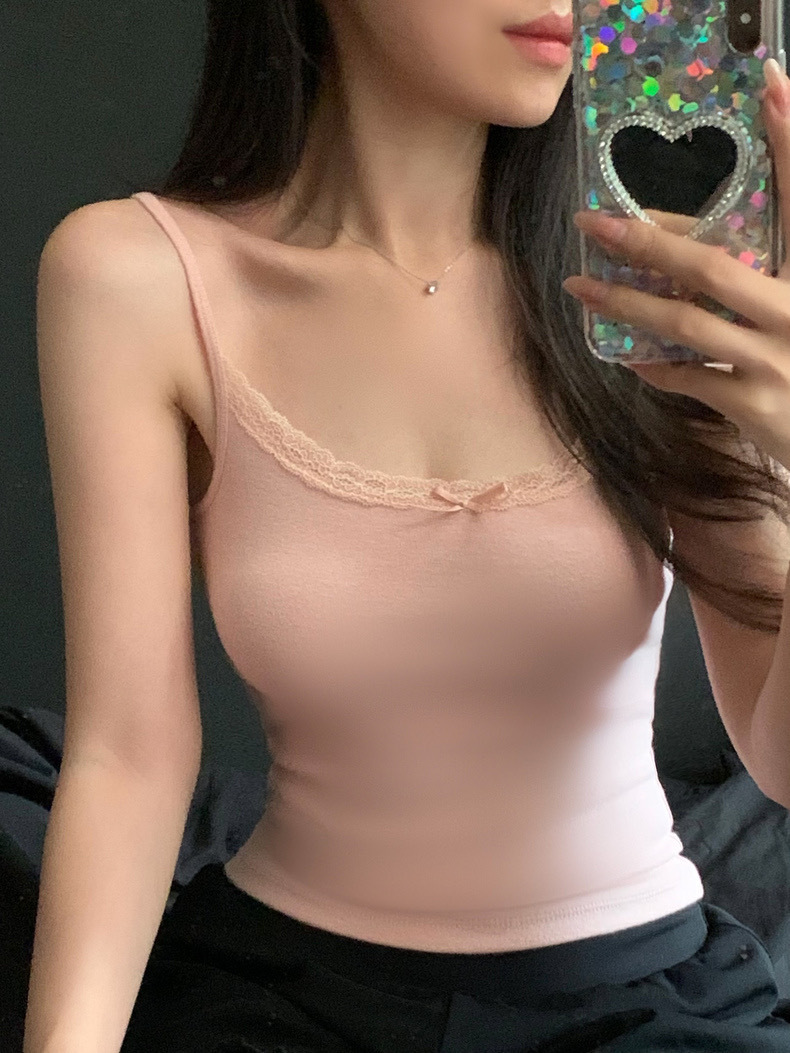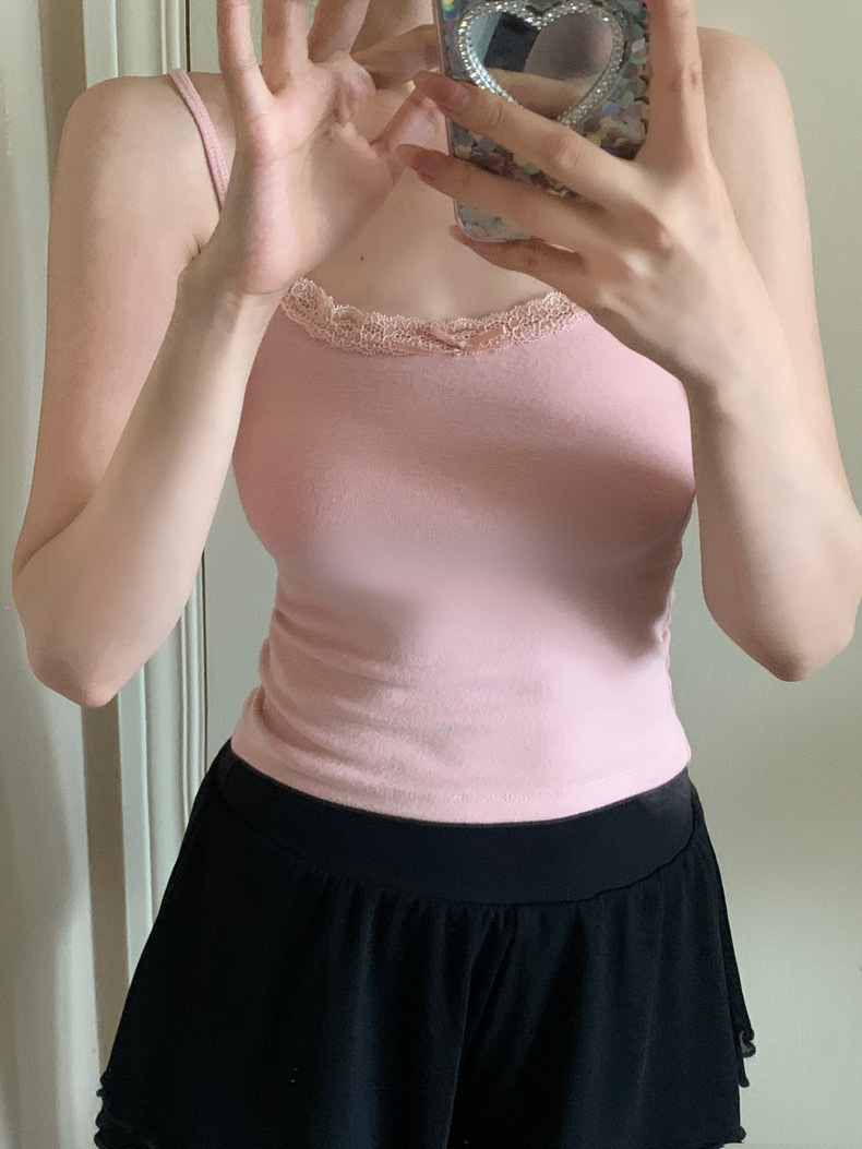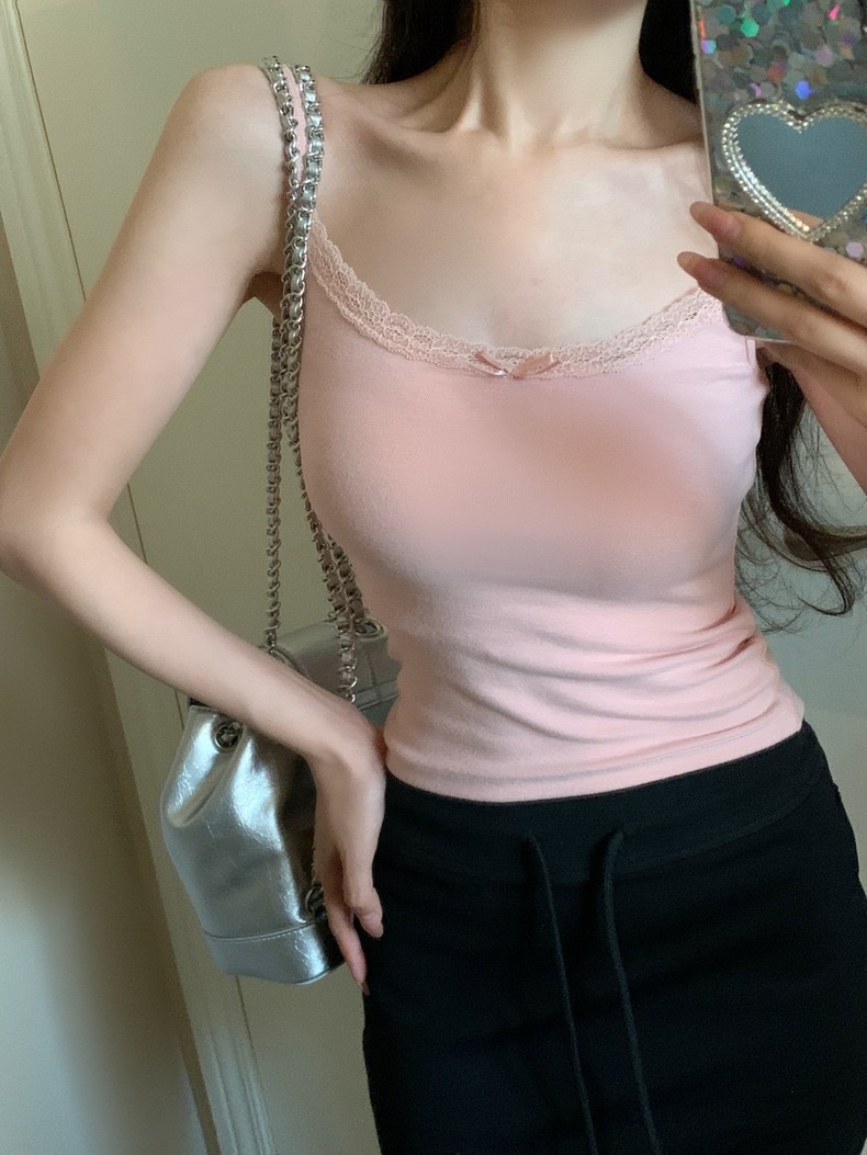2024 봄 새로운 순수한 욕망 슬림 레이스 활 스트랩 여성을위한 편안한 올 매치 기본 단색 조끼