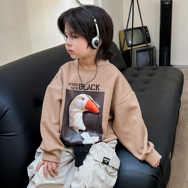소년 스웨터 2024 봄 새로운 어린이 오프 숄더 소매 라운드 넥 셔츠 만화 귀여운 3 차원 미키 탑 긴 소매스토어 가기