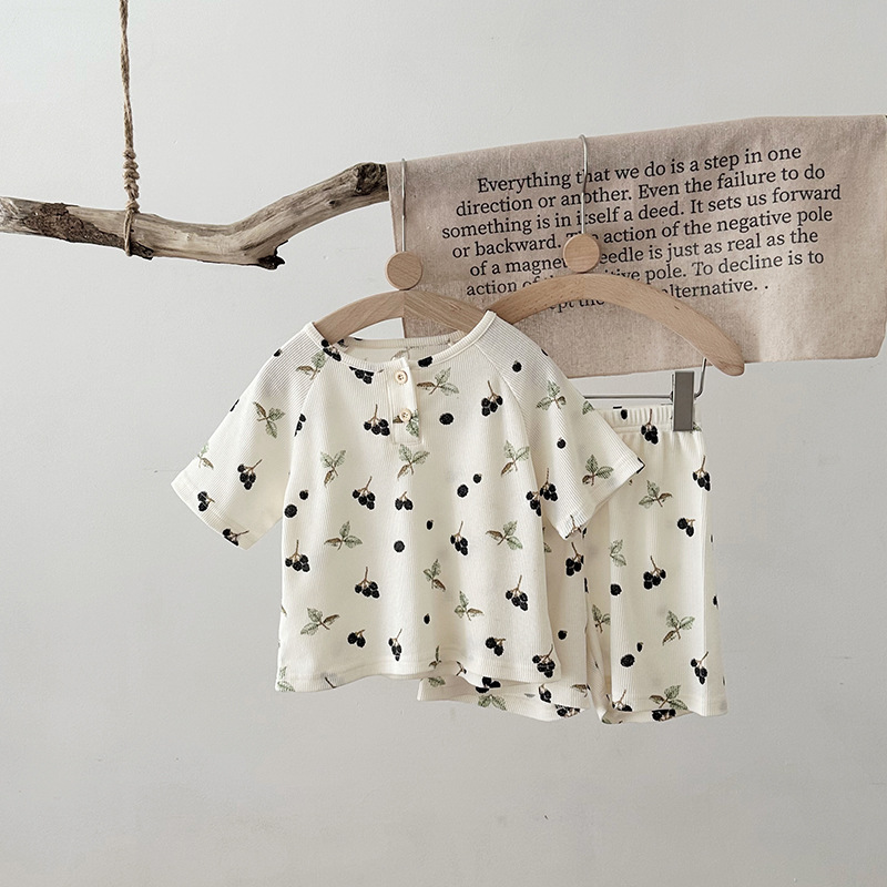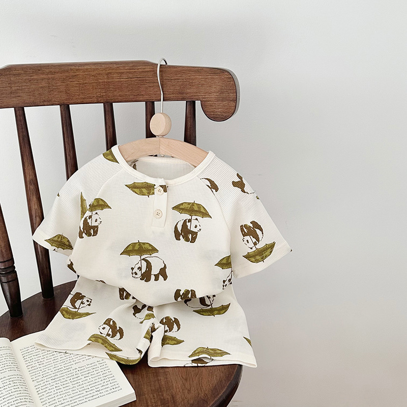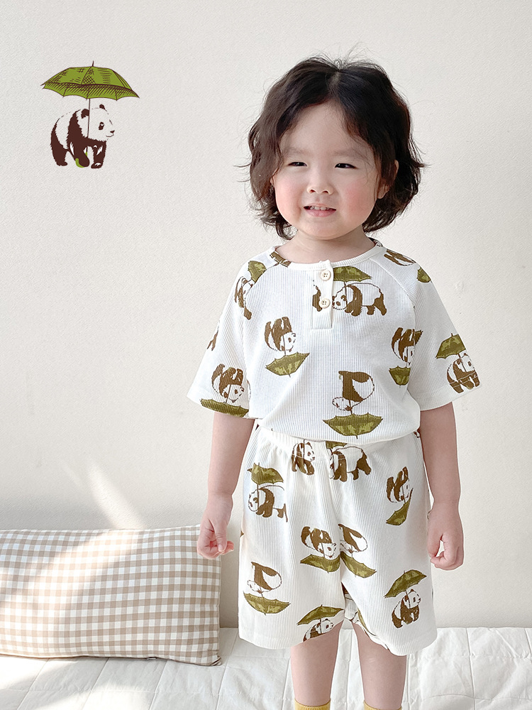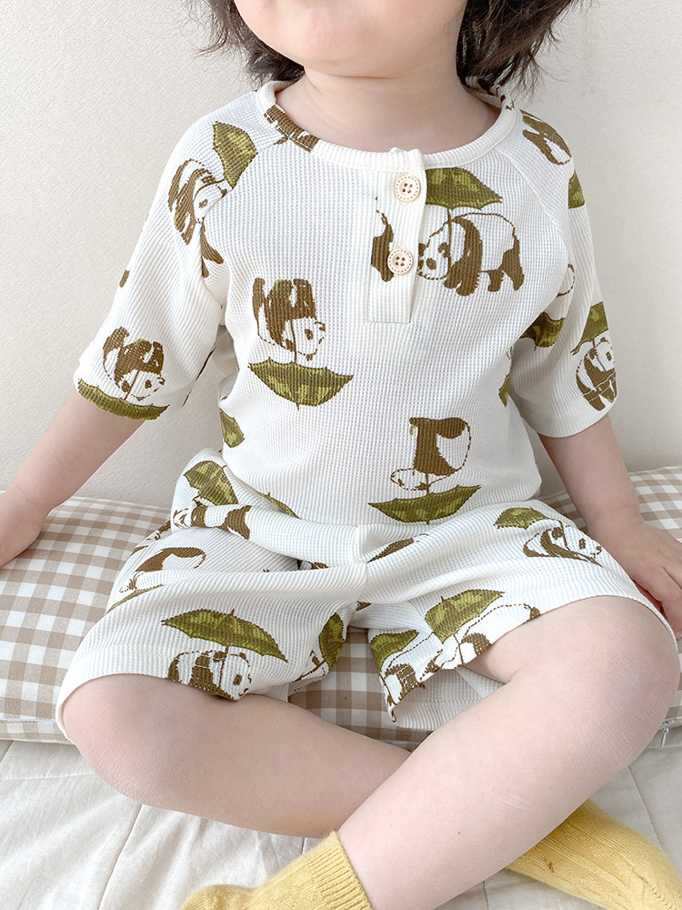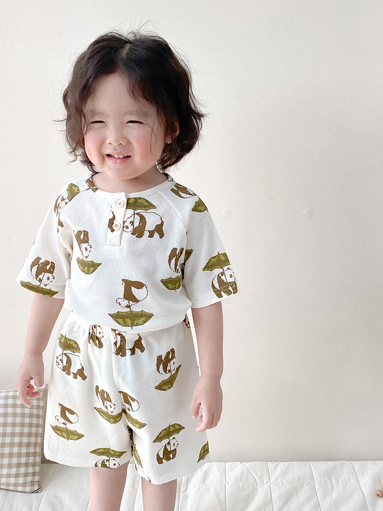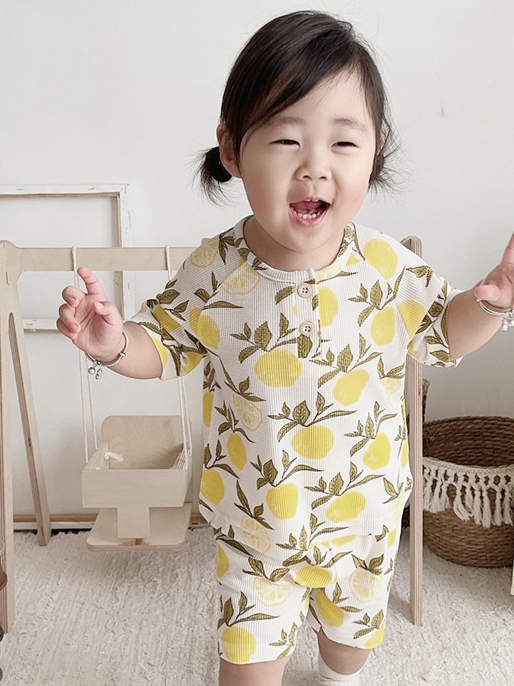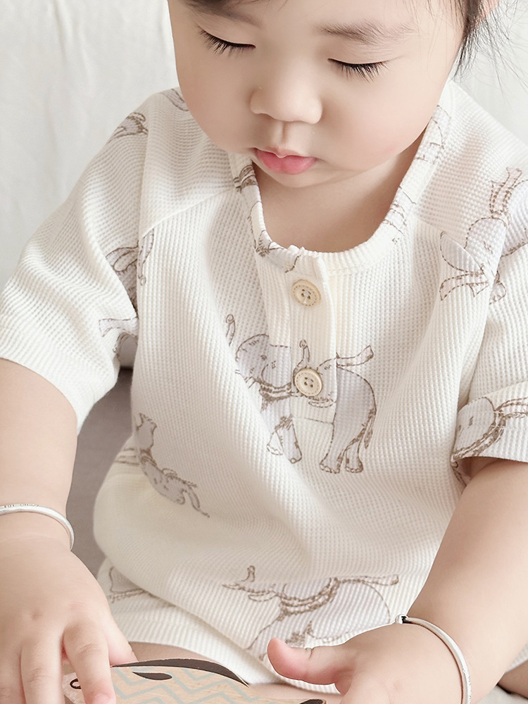 2024 여름 한국 어린이 잠옷 북유럽 스타일 어린이 홈 옷 아기 잠옷 세트 순수한 면 와플스토어 가기