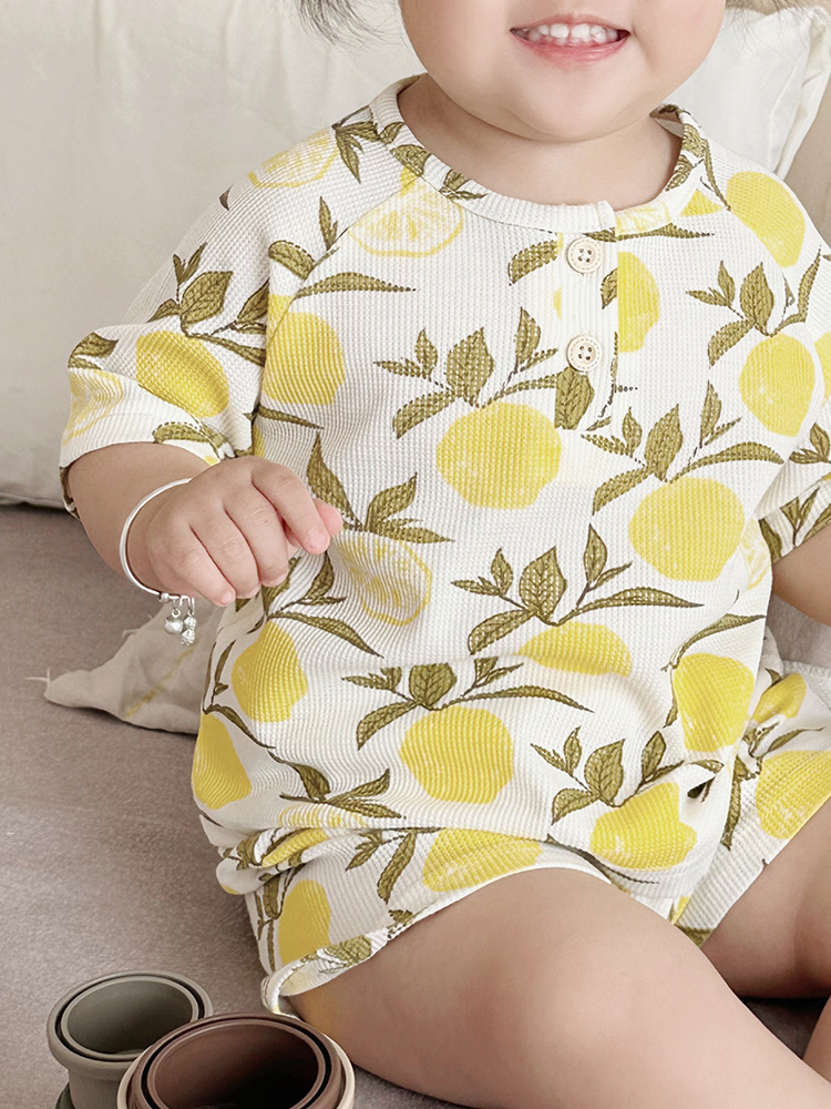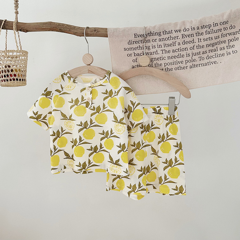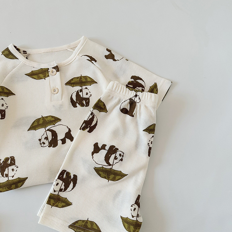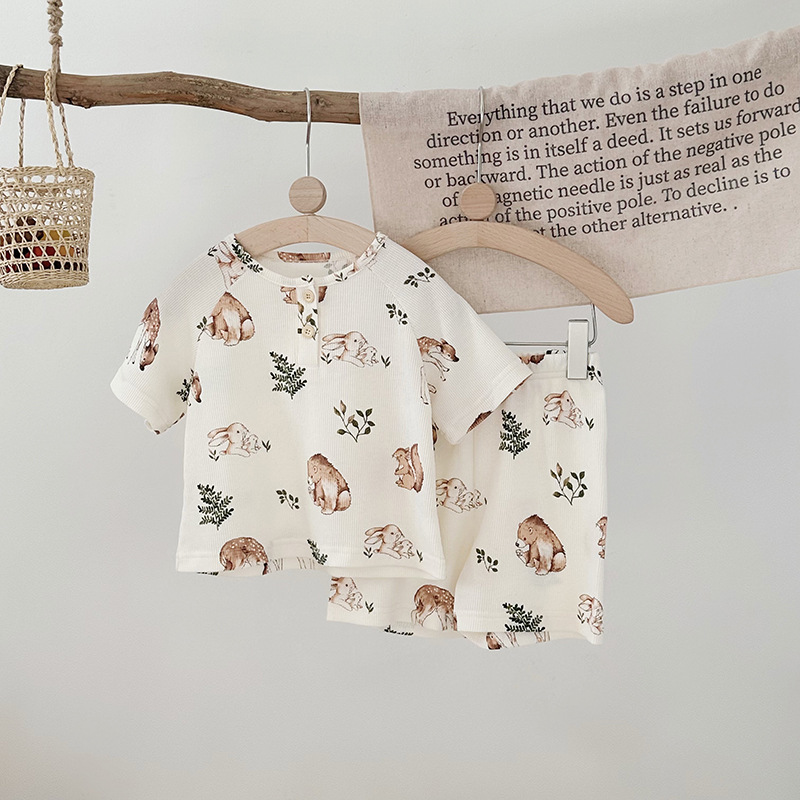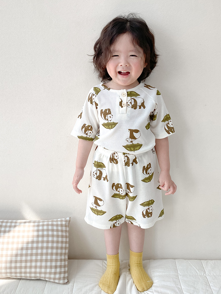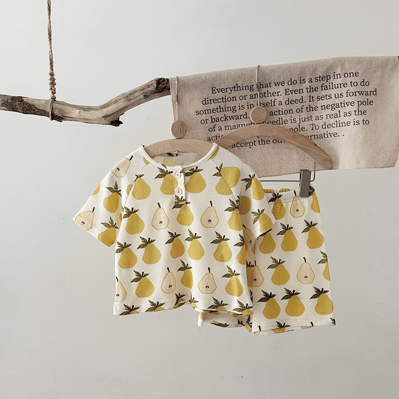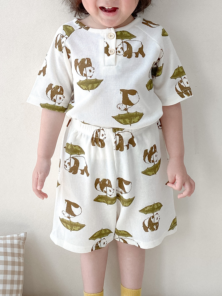 2024 여름 한국 어린이 잠옷 북유럽 스타일 어린이 홈 옷 아기 잠옷 세트 순수한 면 와플스토어 가기