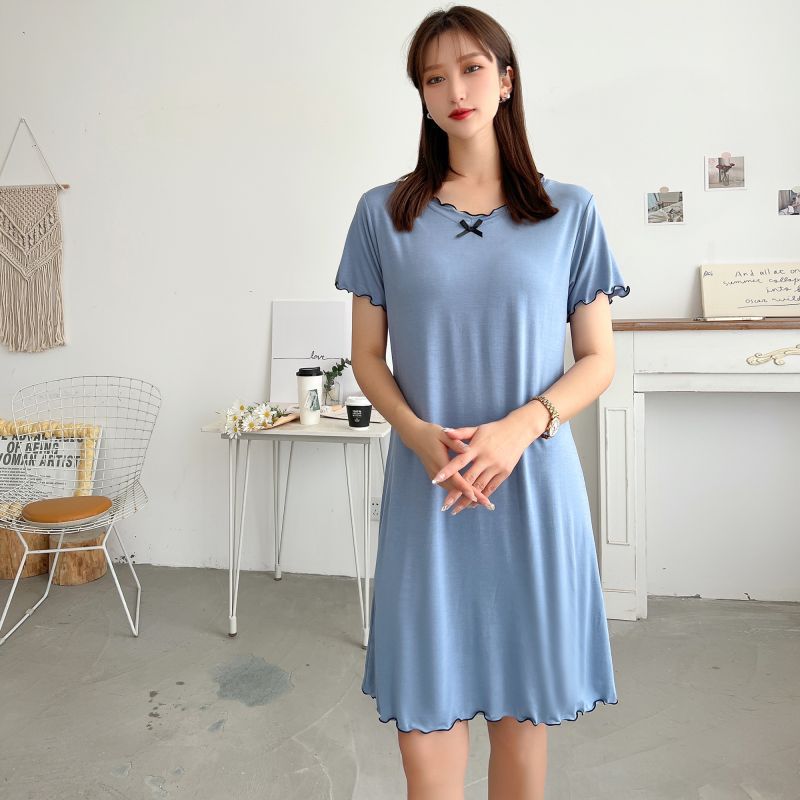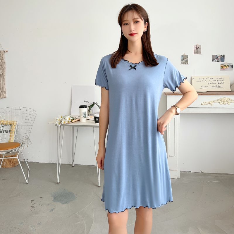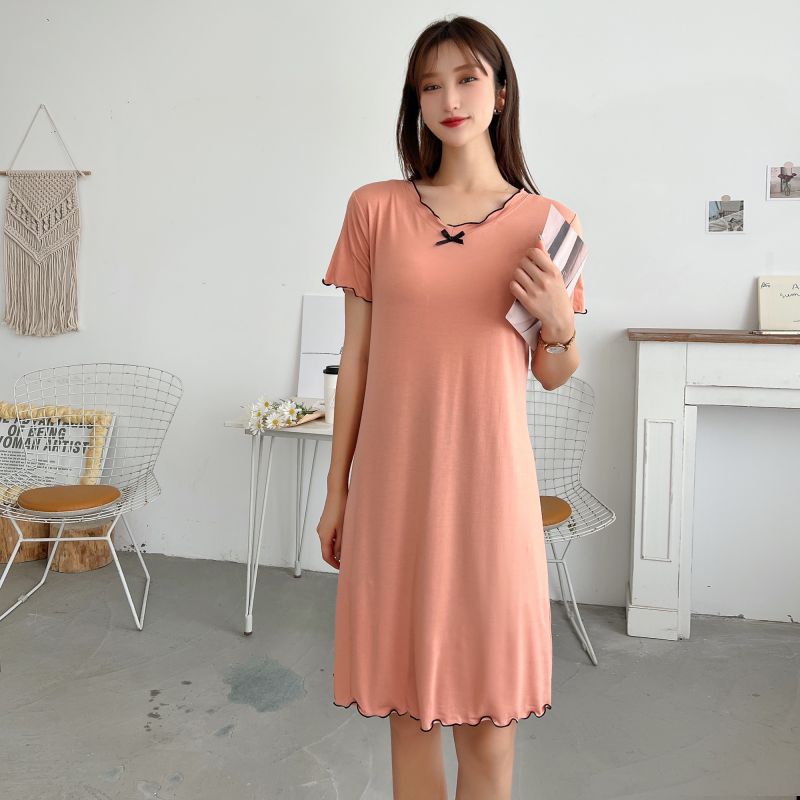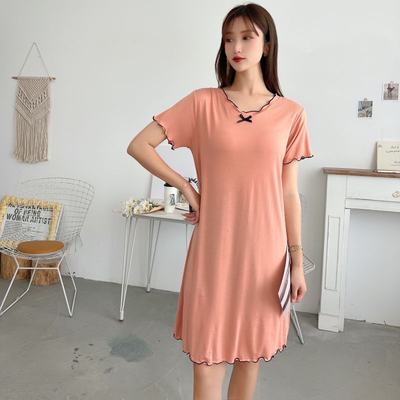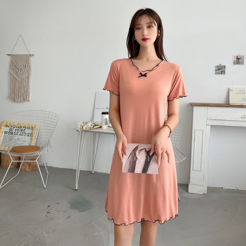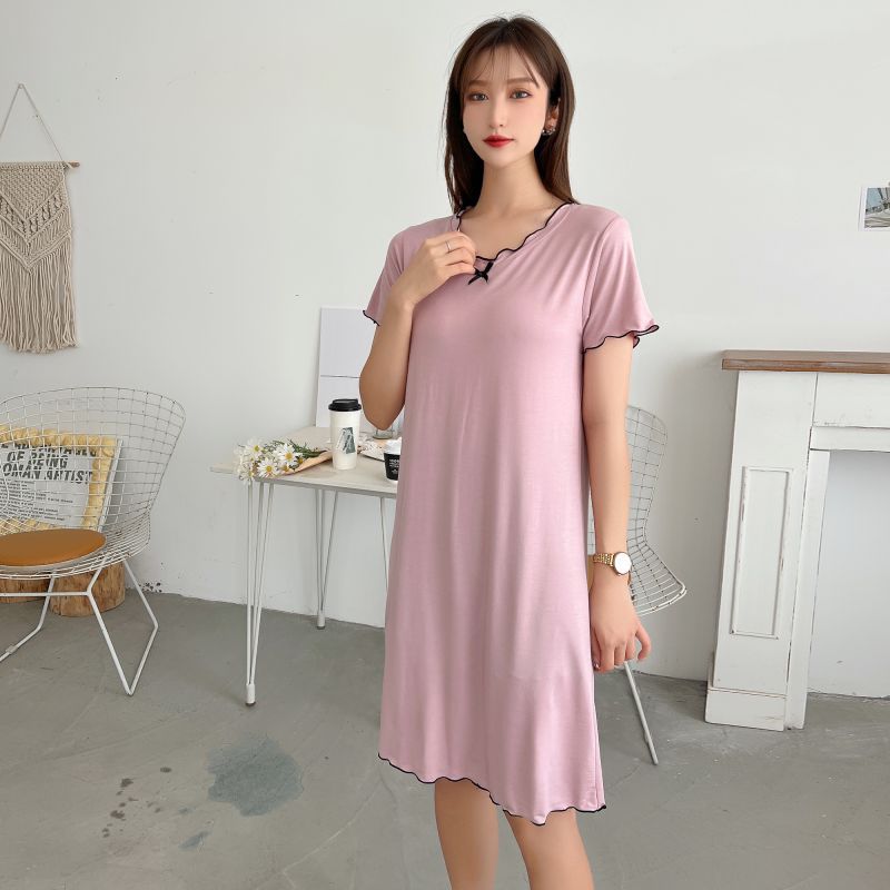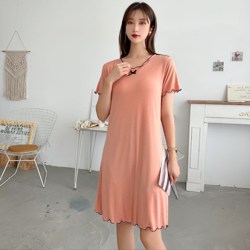 여성용 가슴 패드가있는 모달 파자마 봄과 여름 궁전 스타일 섹시한 홈 나이트 드레스 얇은 원피스 밖에서 착용 할 수 있습니다.스토어 가기