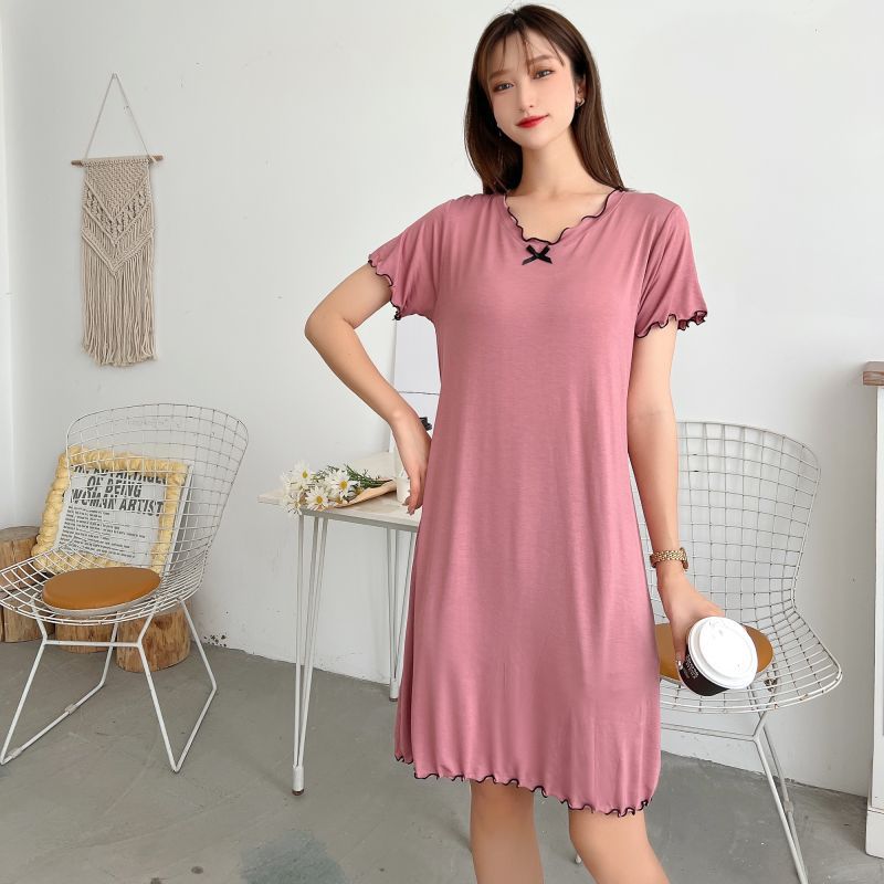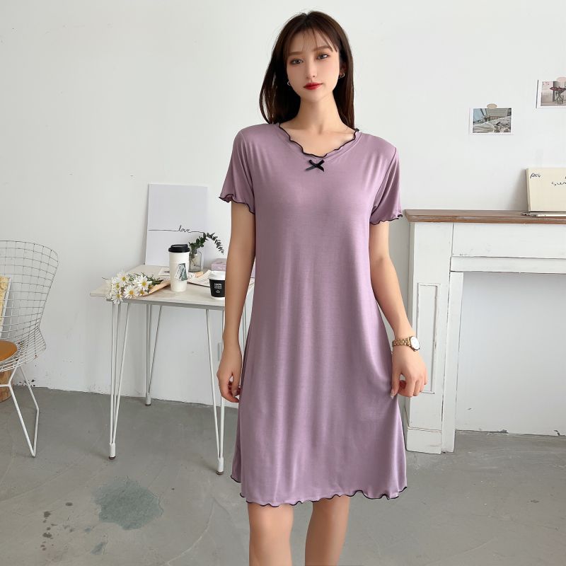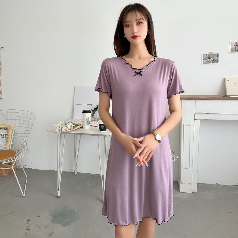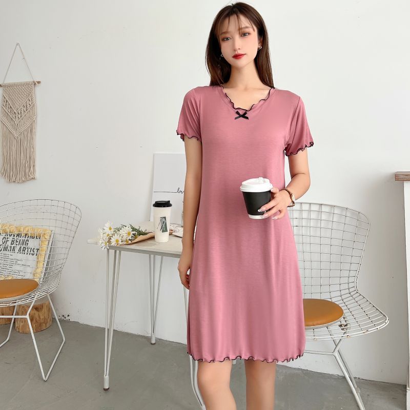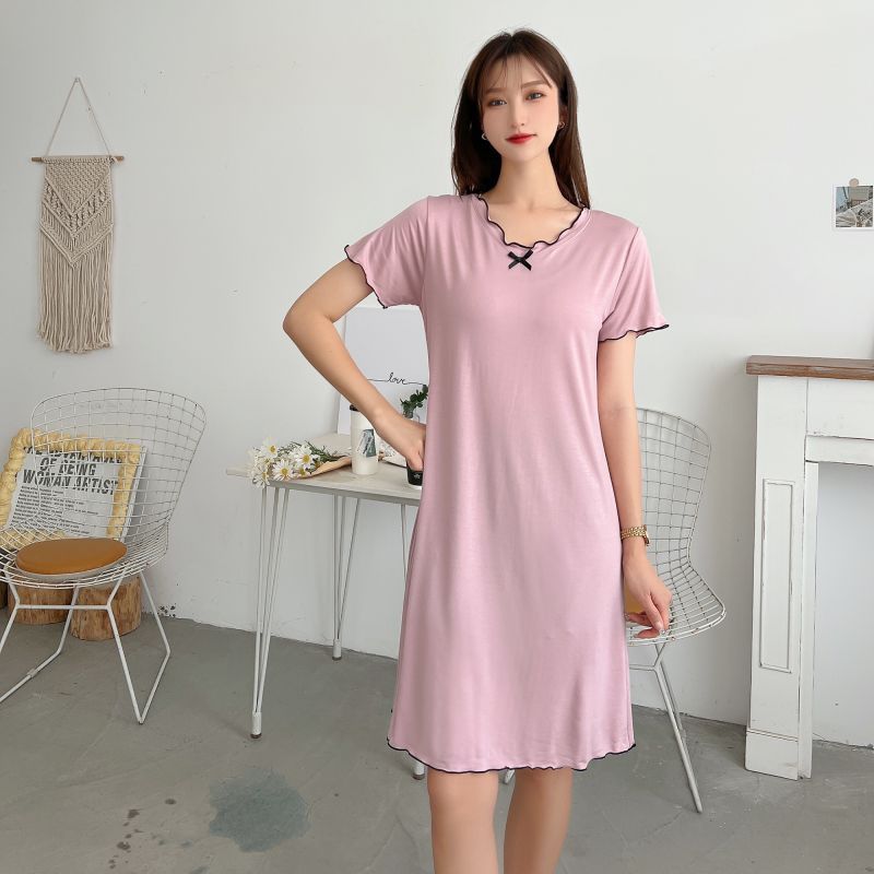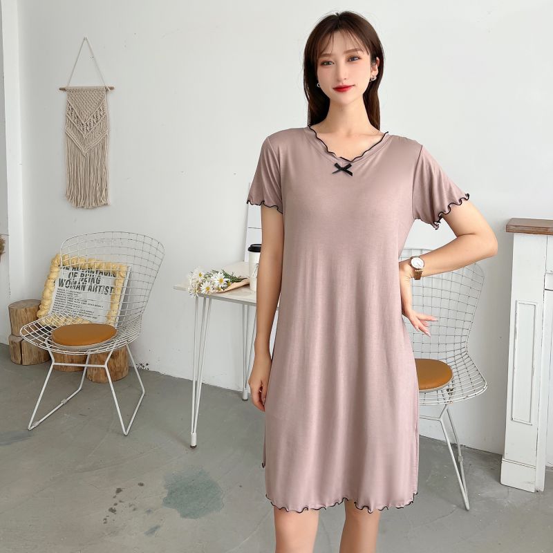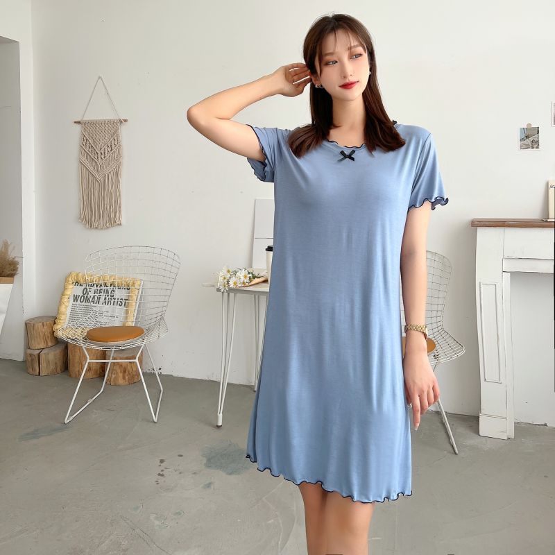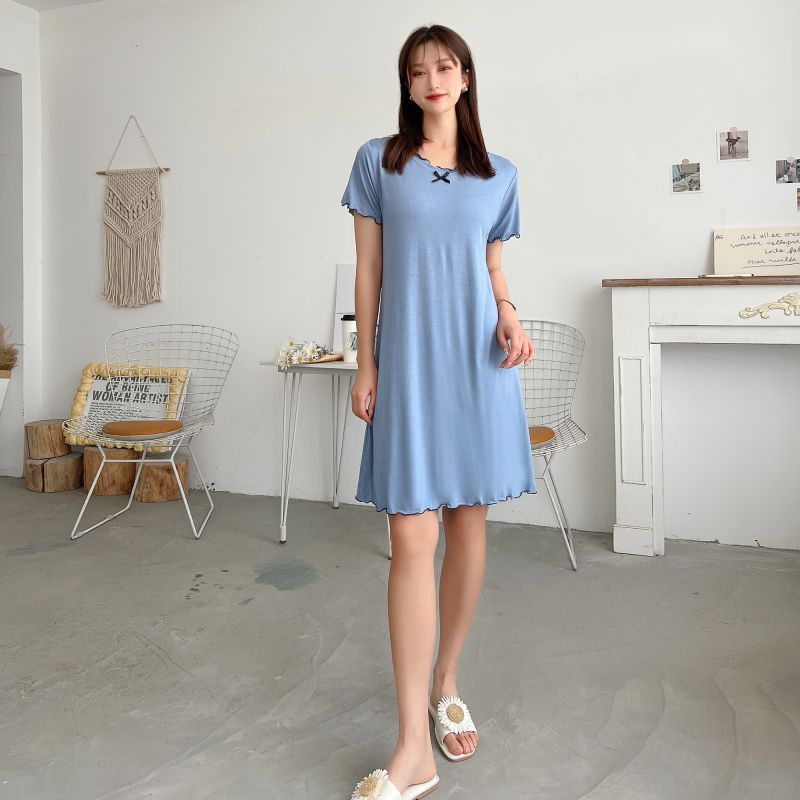 여성용 가슴 패드가있는 모달 파자마 봄과 여름 궁전 스타일 섹시한 홈 나이트 드레스 얇은 원피스 밖에서 착용 할 수 있습니다.스토어 가기